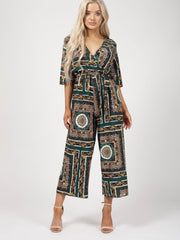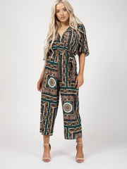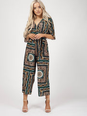 Barockdruck -Wrap -Front -Culotte -Jumpsuit