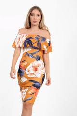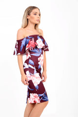 Blumendruck von der Schulter -Frill -Bardot -Kleidung