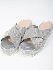 Cross -Gurt -Diamante verschönerte Espadrille -Schieberegler