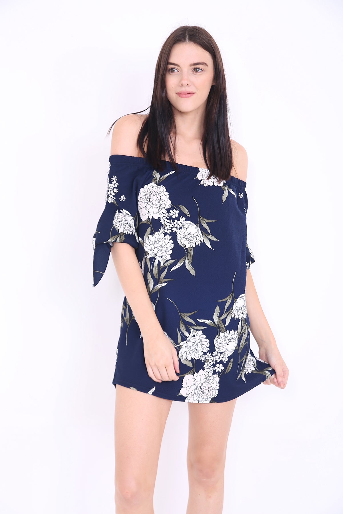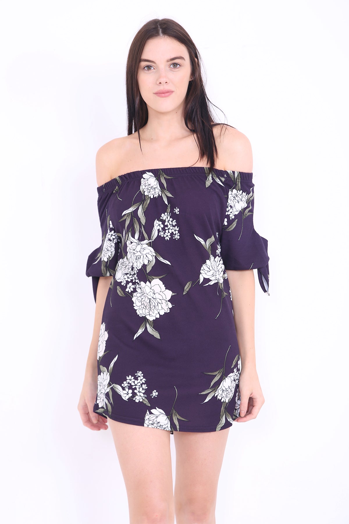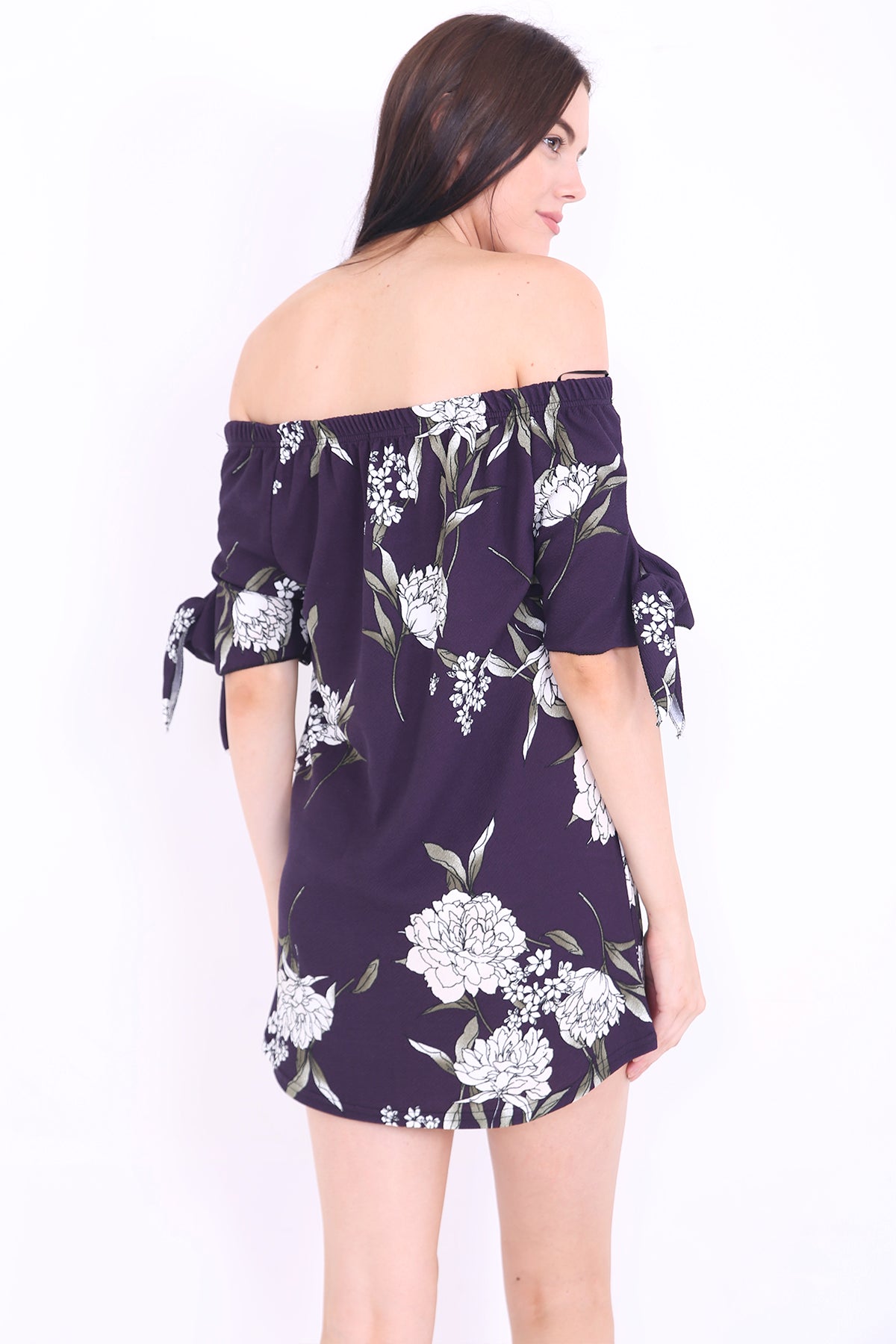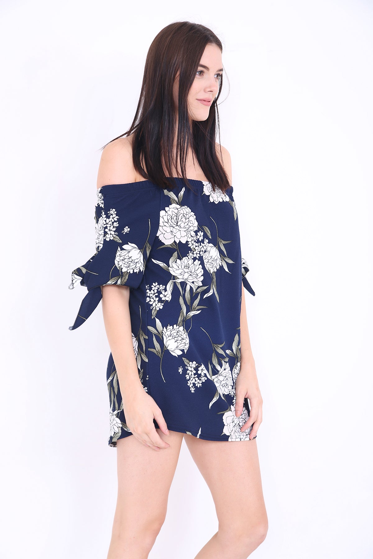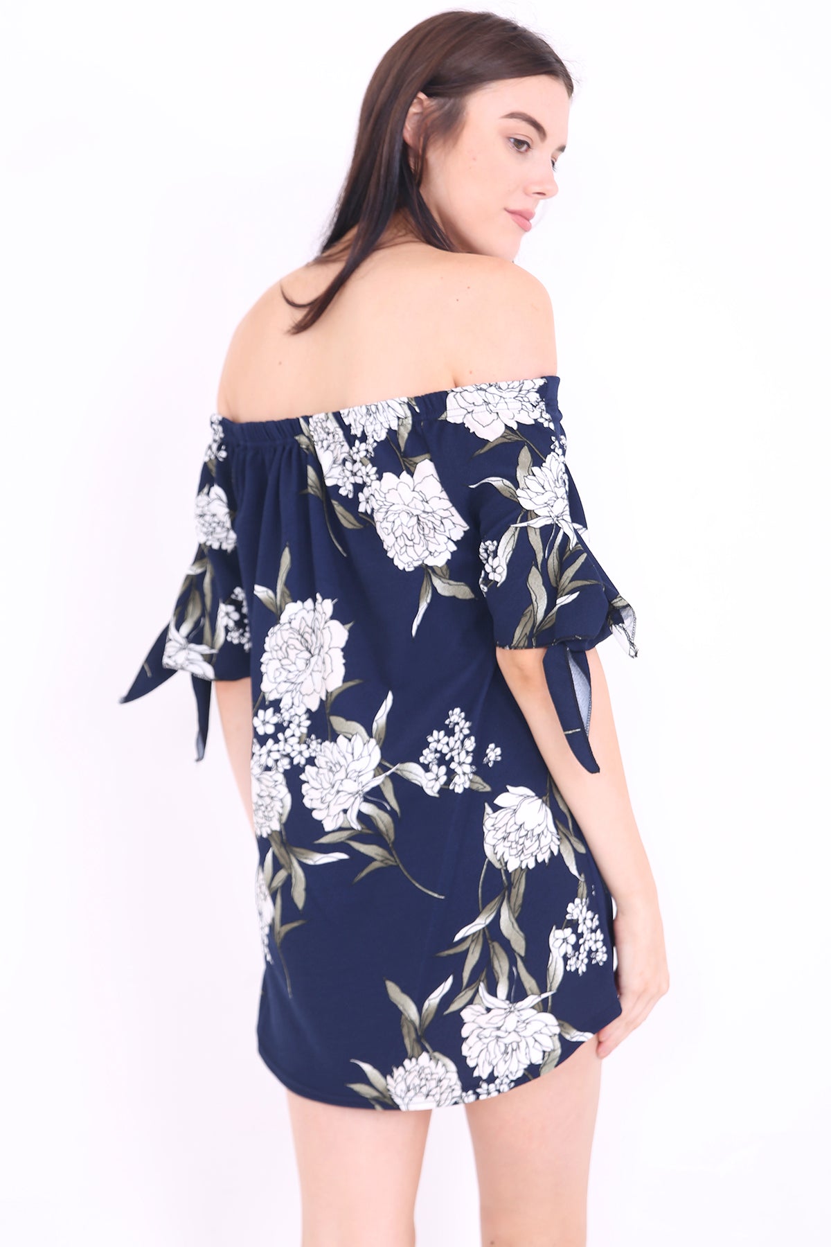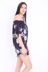 Floral Bardot Crepe Dress Top mit Krawattenhülsen