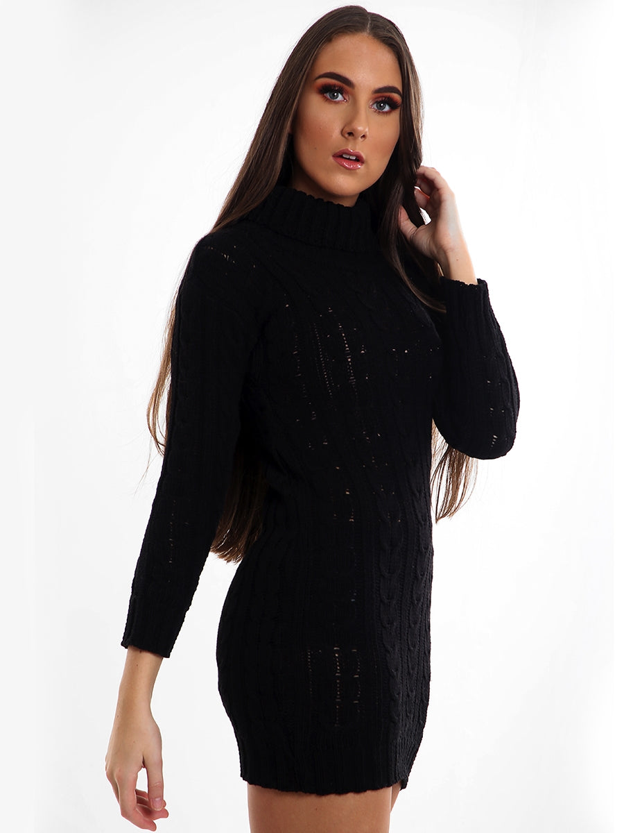 Kady & Olivia Roll Hals Kabel -Strick -Jumper -Kleid