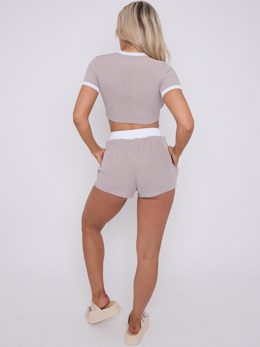 Kontrastgeschlechtte Rippen Crop Top & Shorts Co-ordte