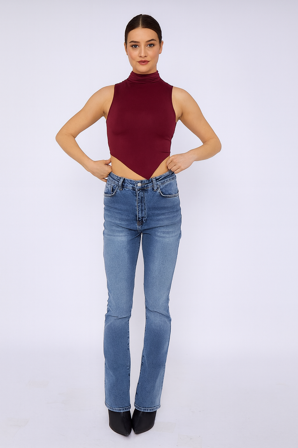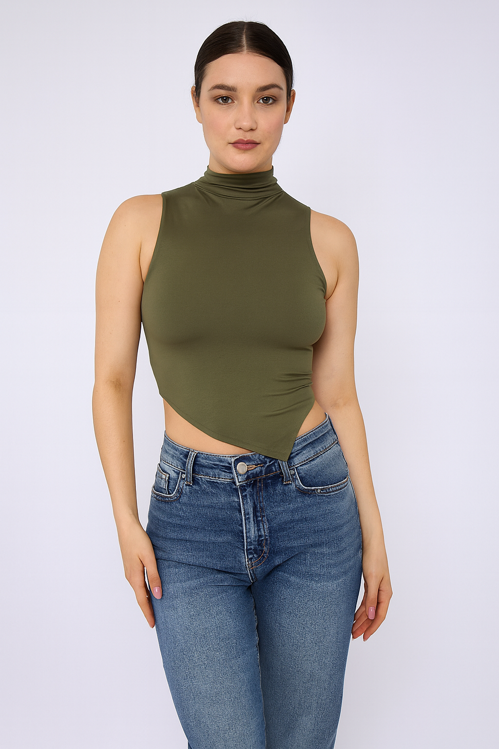 Slinky auf hohem Hals gewachsen asymmetrischem Saumoberteil gesammelt