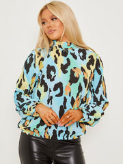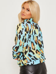 Leopardendruck Frill Shirted High Neck Bluse