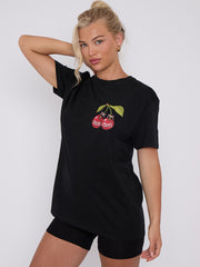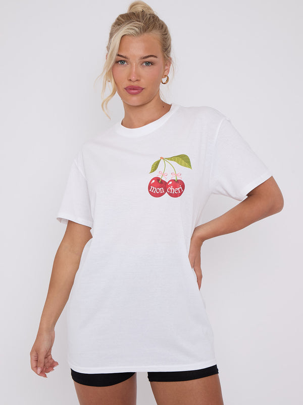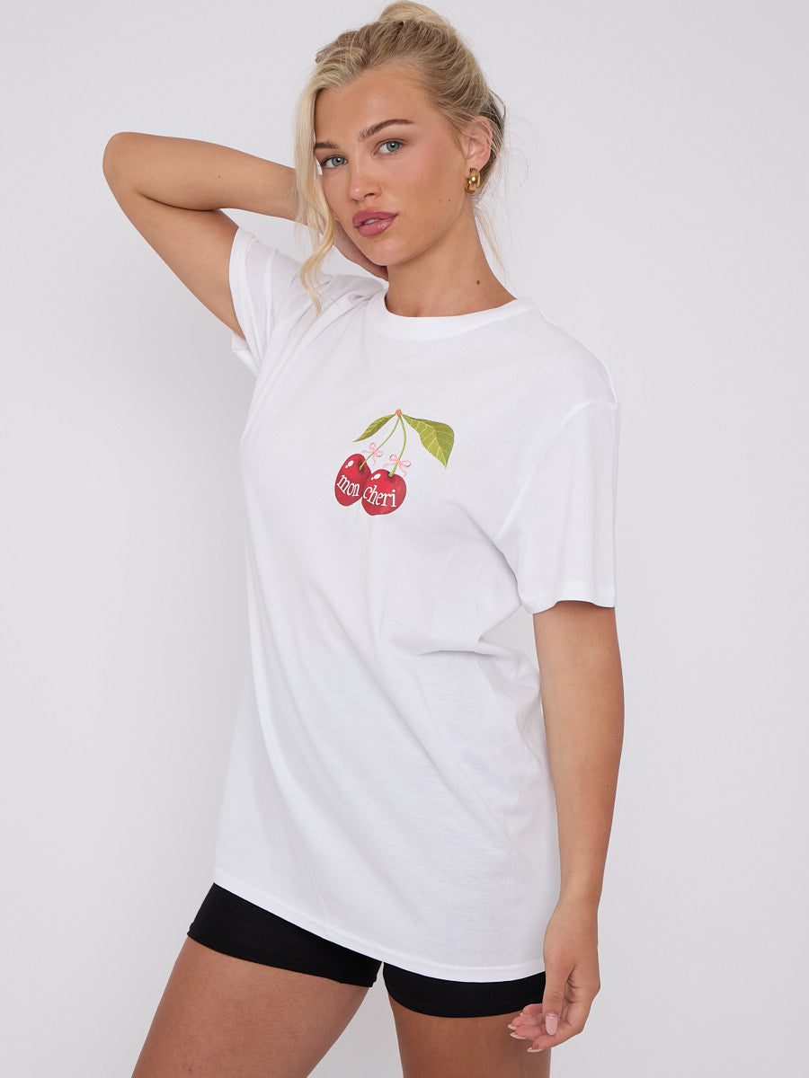 Mon Cheri Cherry Grafik Gedrucktes T-Shirt