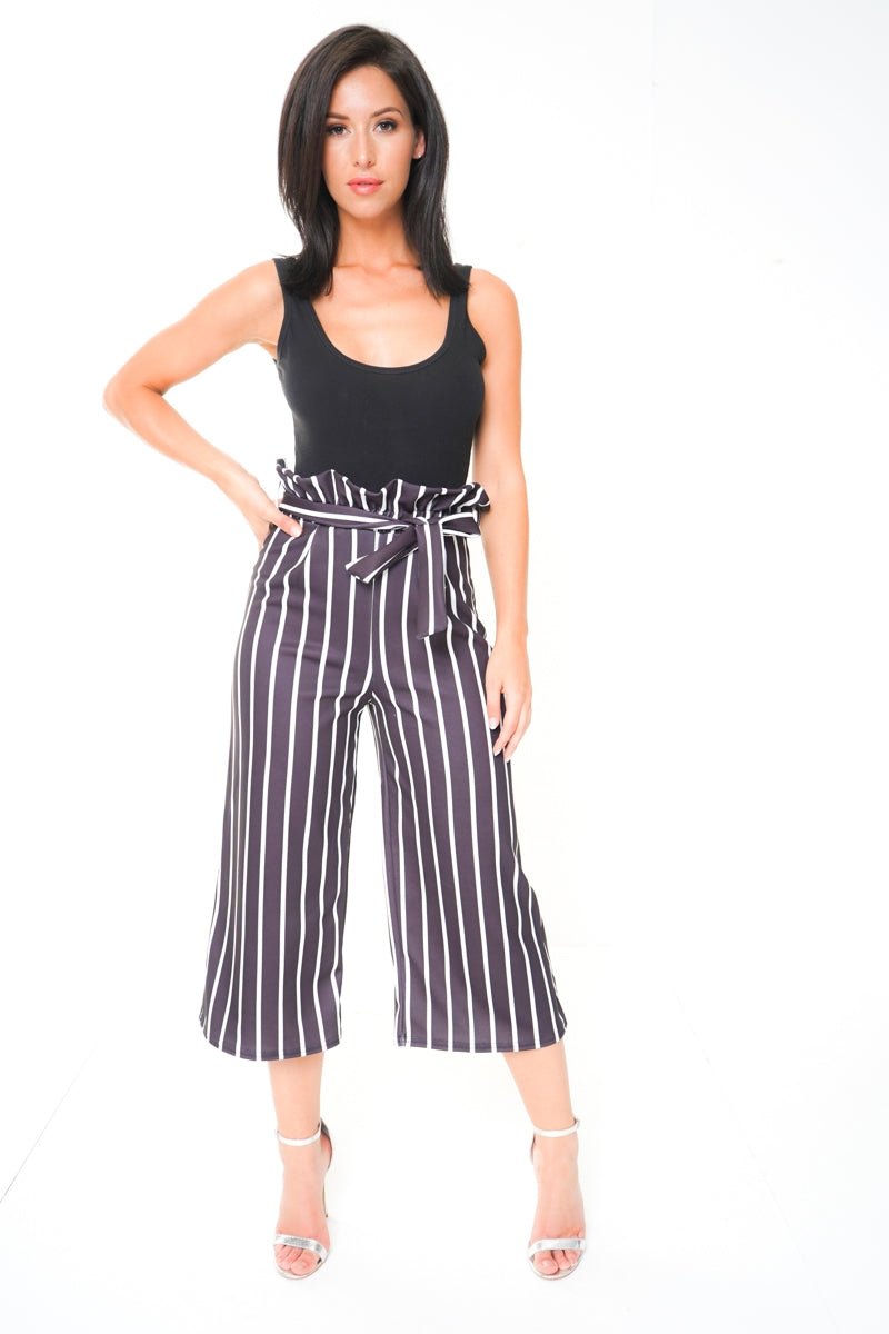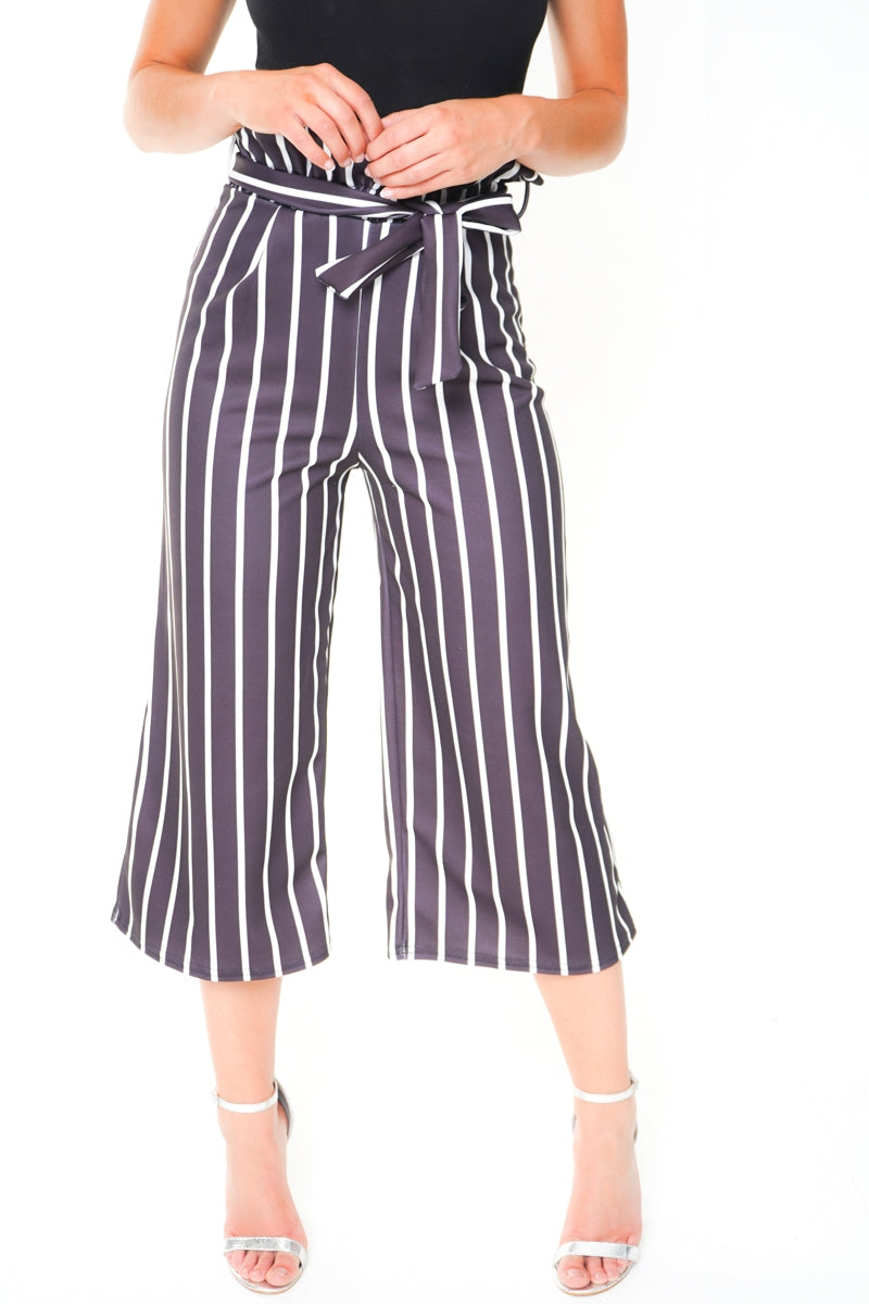 Papiertüte Krawatte Taille gestreiftes Culotte -Hosen