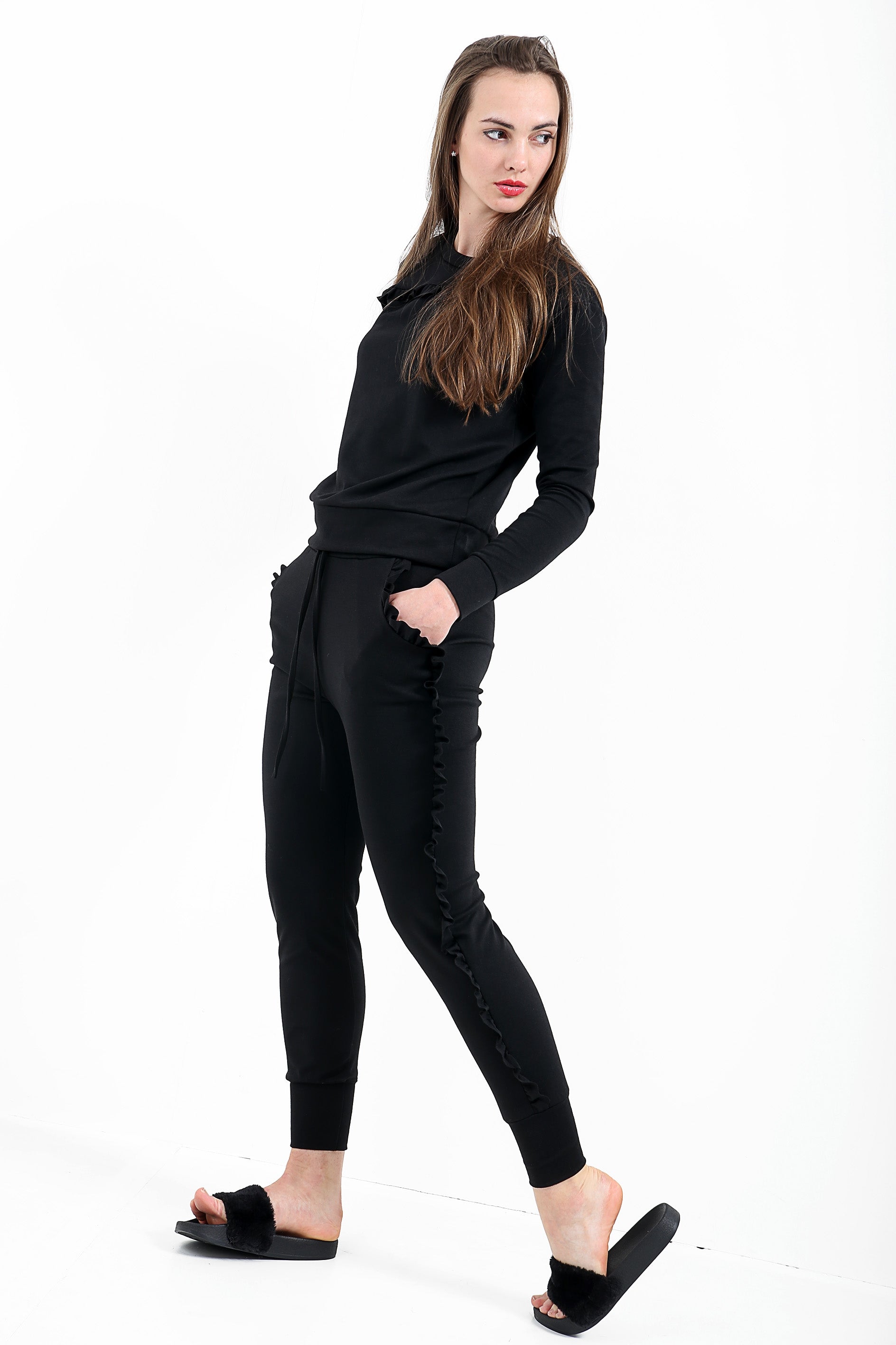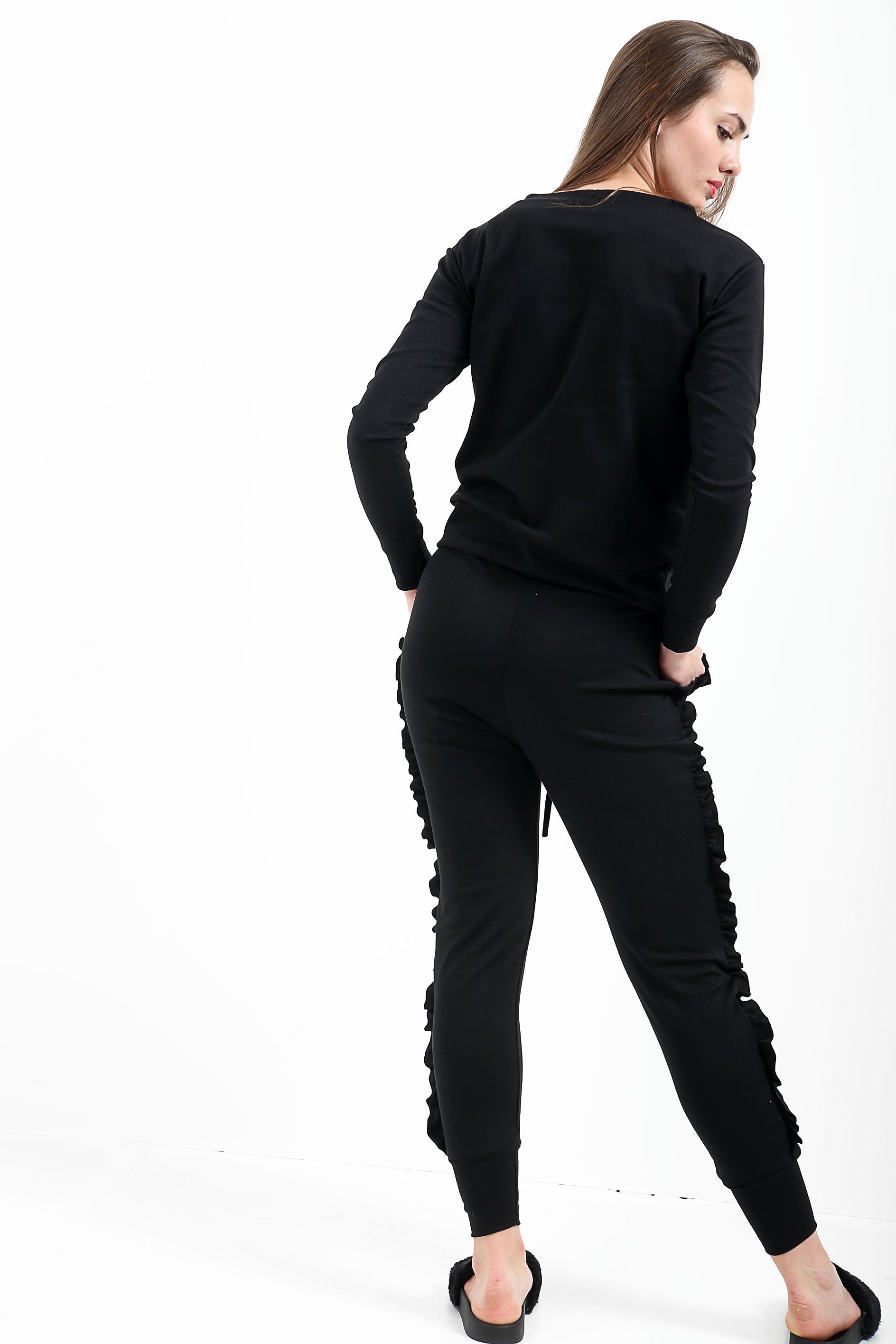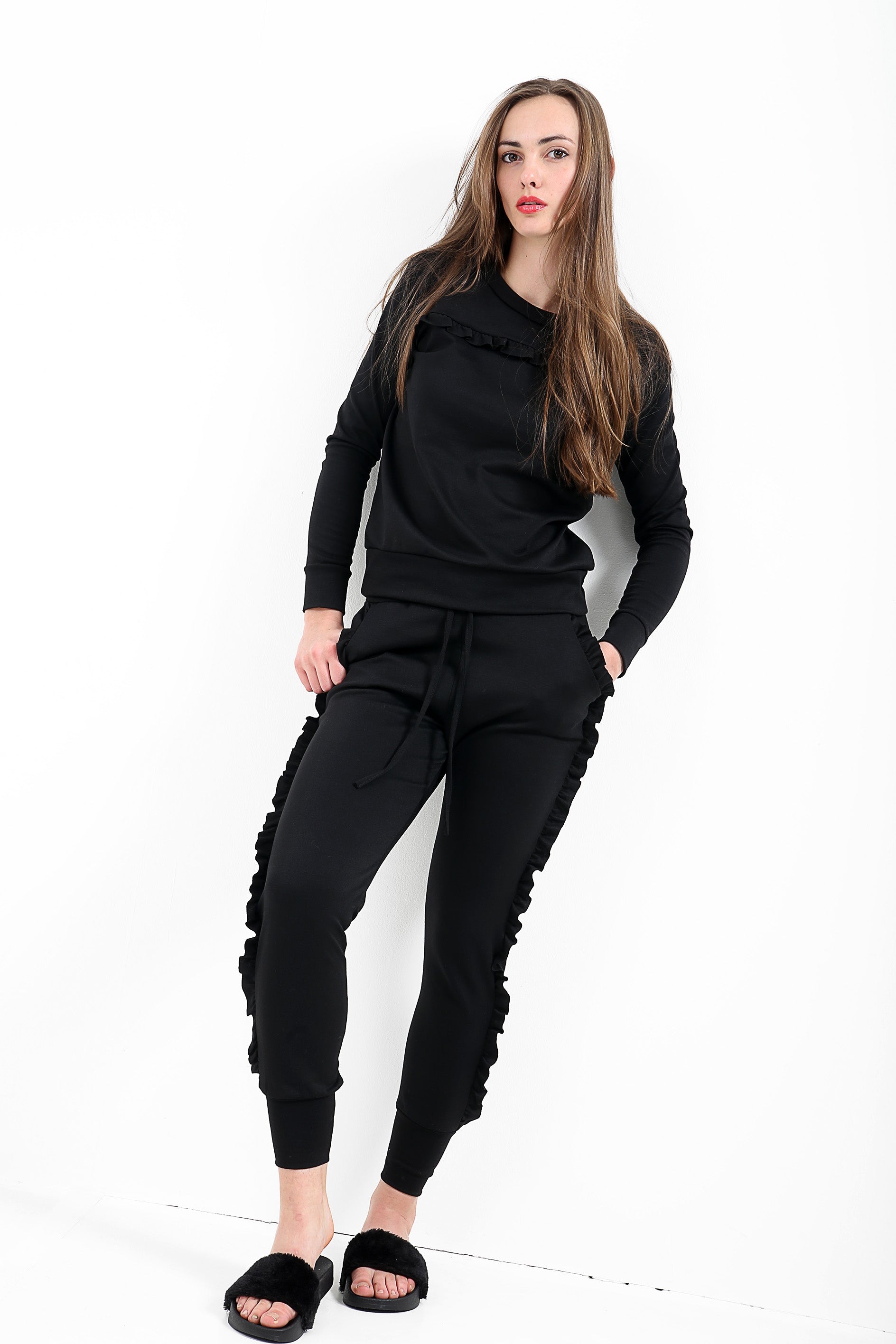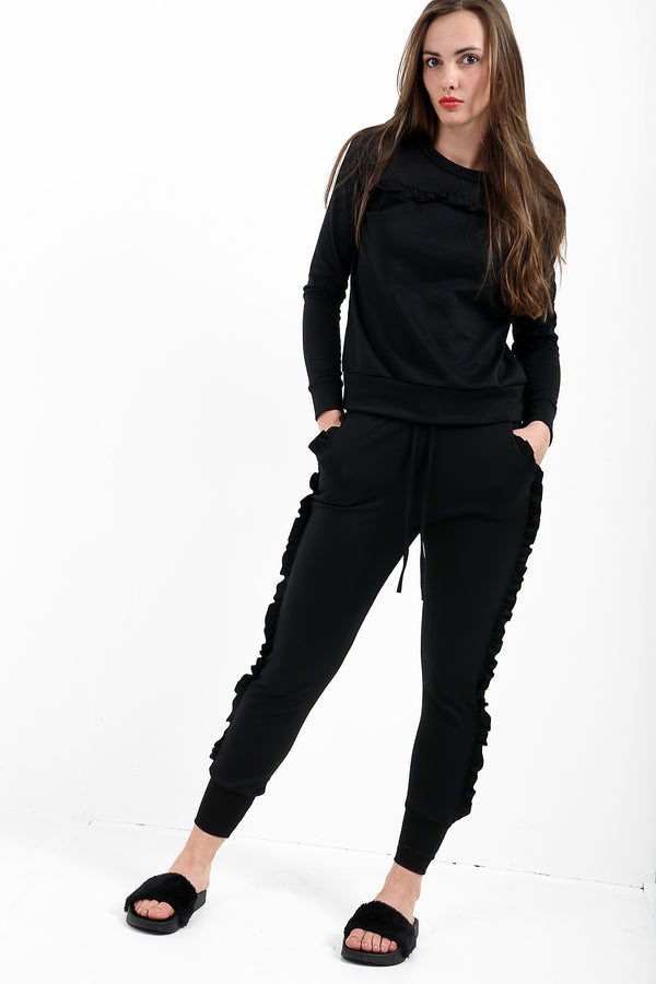 Rüschenfrill -Top und Jogger Lounge -Anzug
