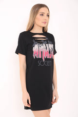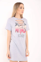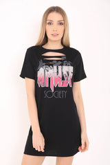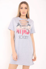Slash Front Amuse Gedrucktes Longline T -Shirt -Kleid