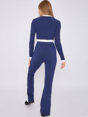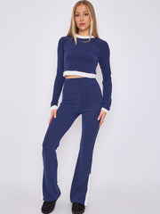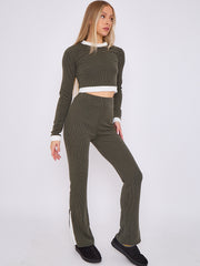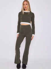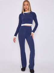 Contrast Trim Ribbed Crop Top & Wide Leg Trouser Co-ord
