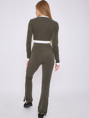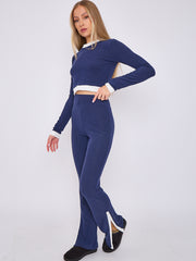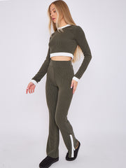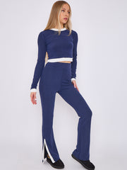 Contract Trim Ribbed Crop Top & Side Split Trouser Co-ord