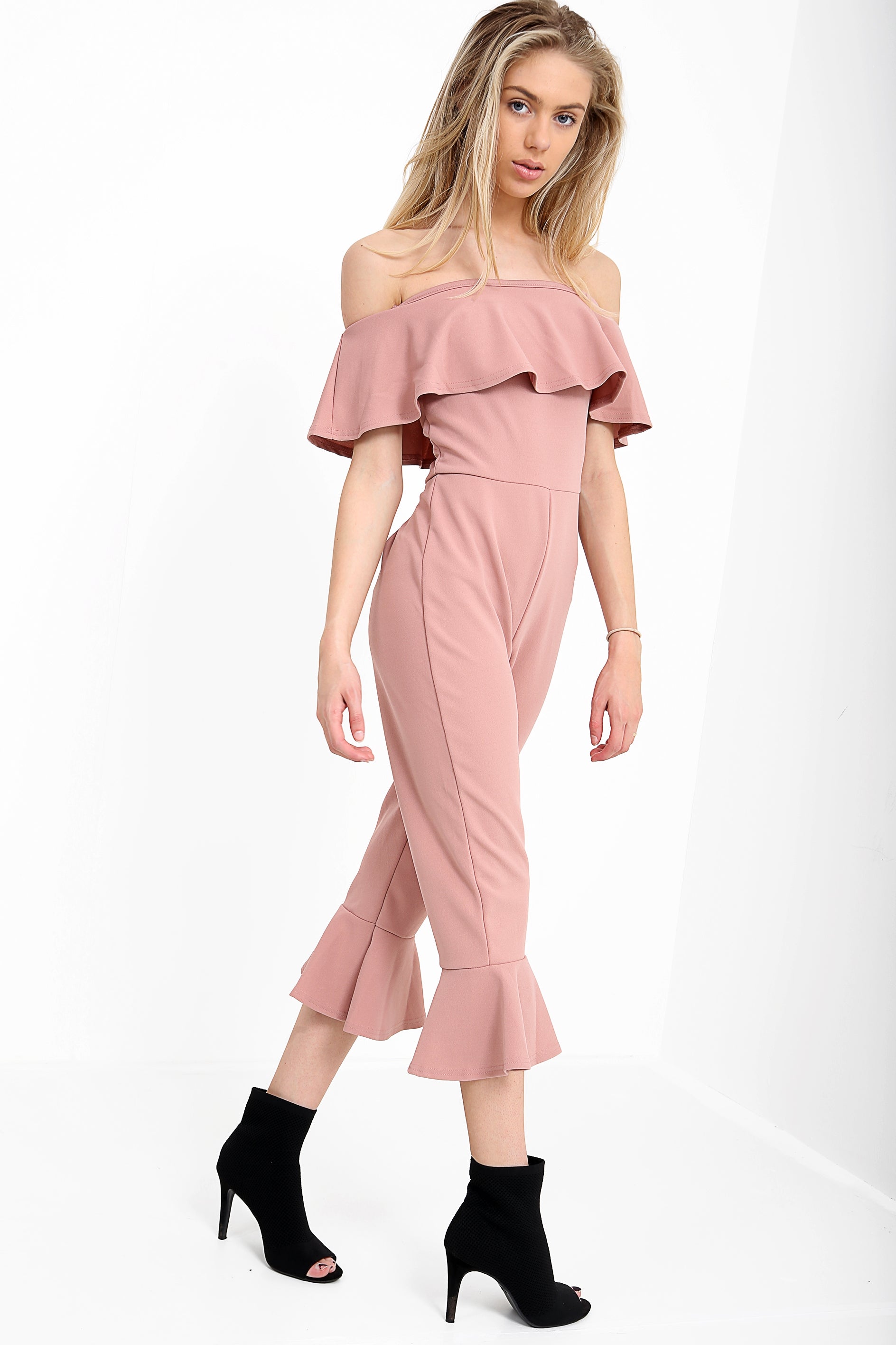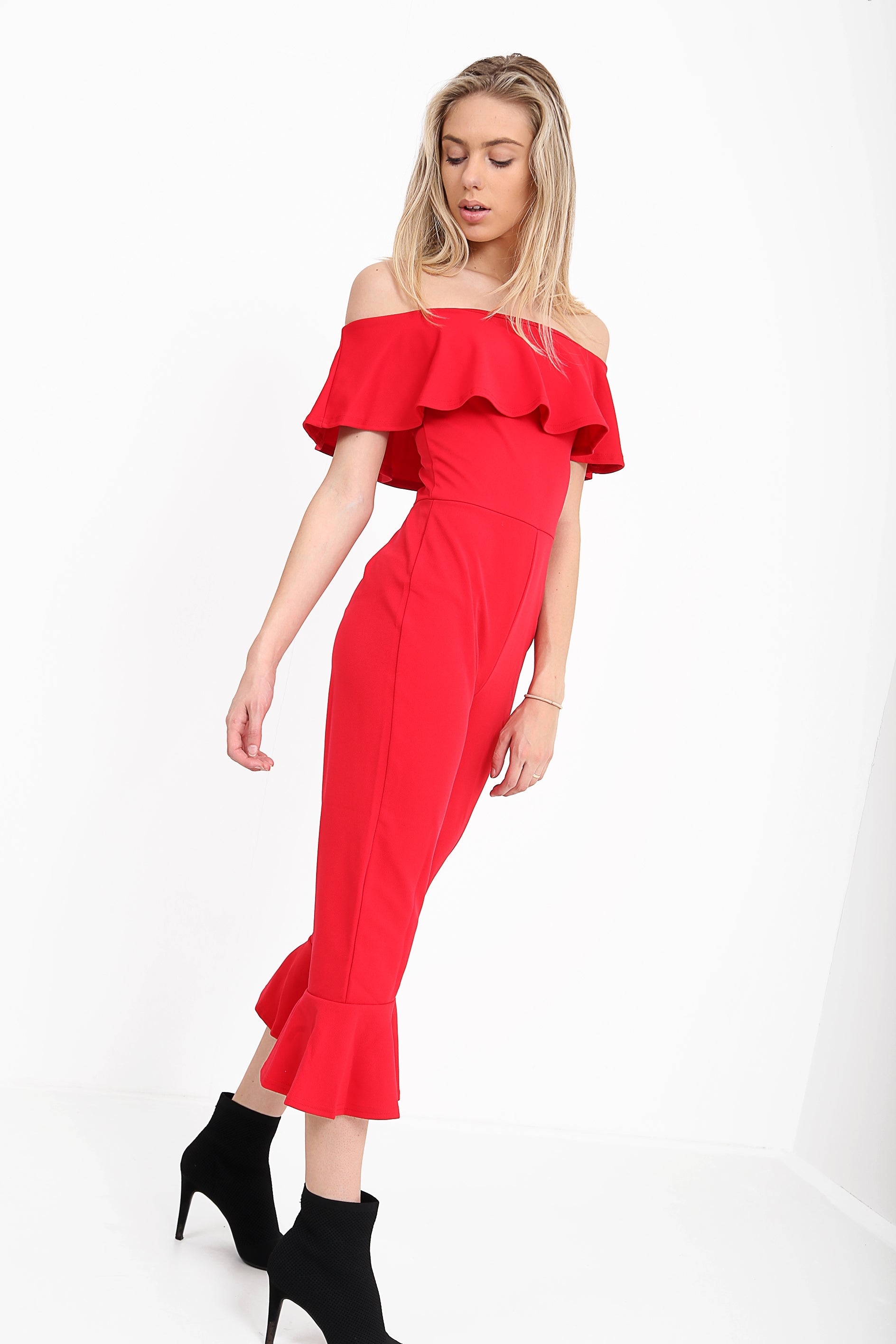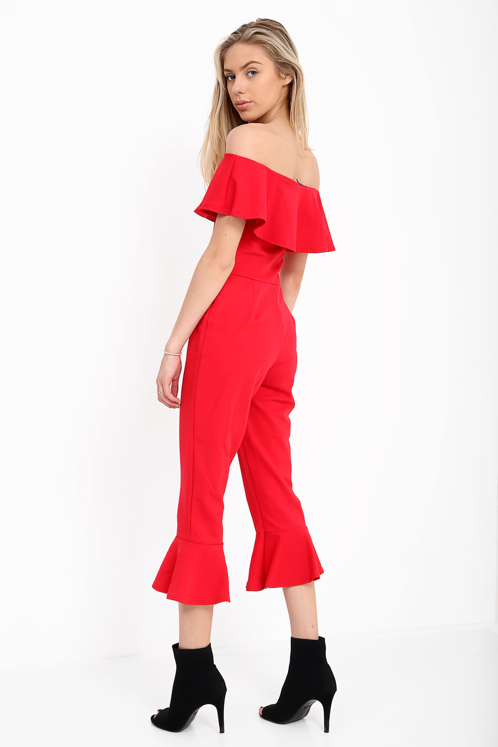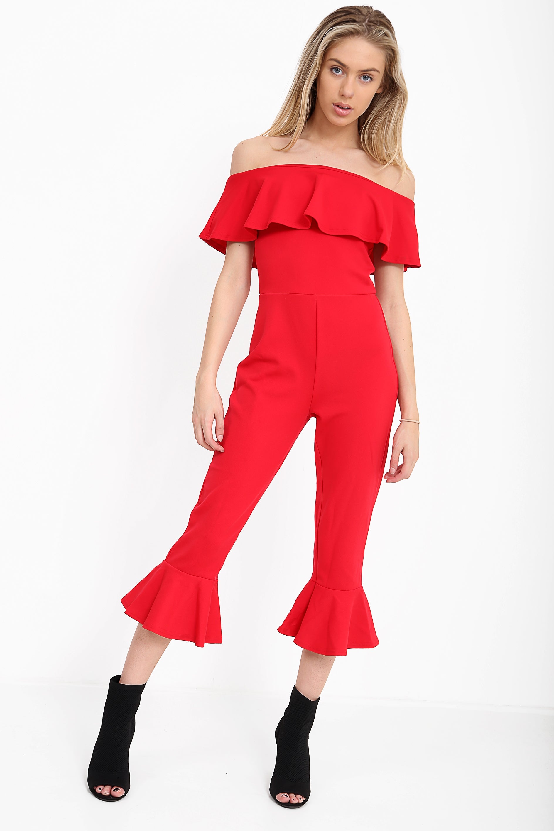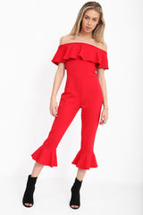 Frill Detail Bardot Culotte Jumpsuit