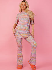 Multi Coloured Oversized Top & Flared Trouser Co-ord