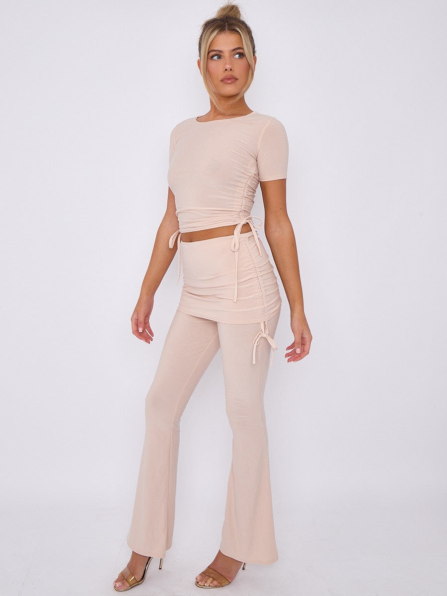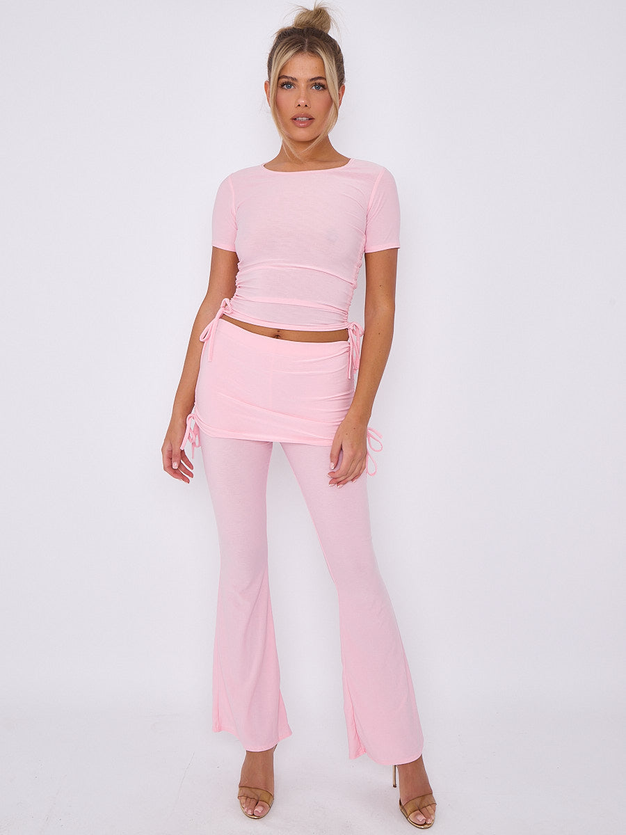 Ruched Crop Top & Fold Over Flared Trouser Co-ord