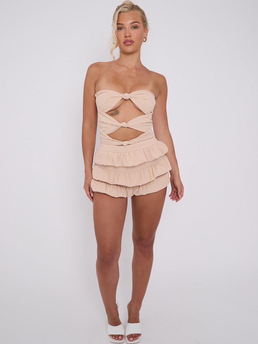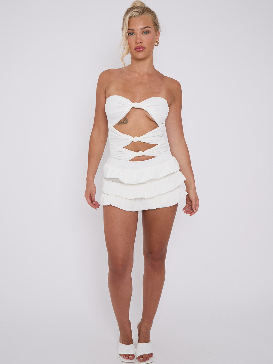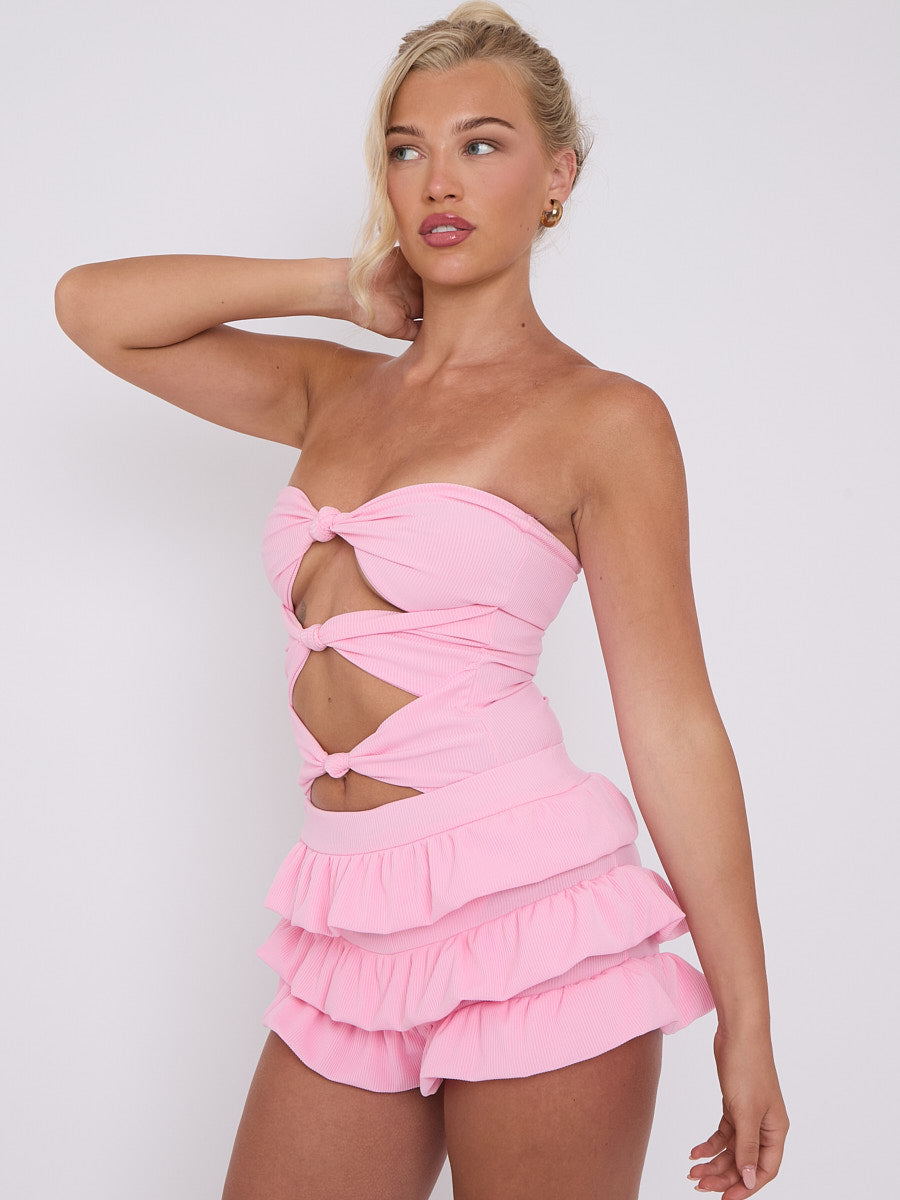 Ruffle Skirt Skort & Cut Out Knot Front Bandeau Bodysuit Co-ord