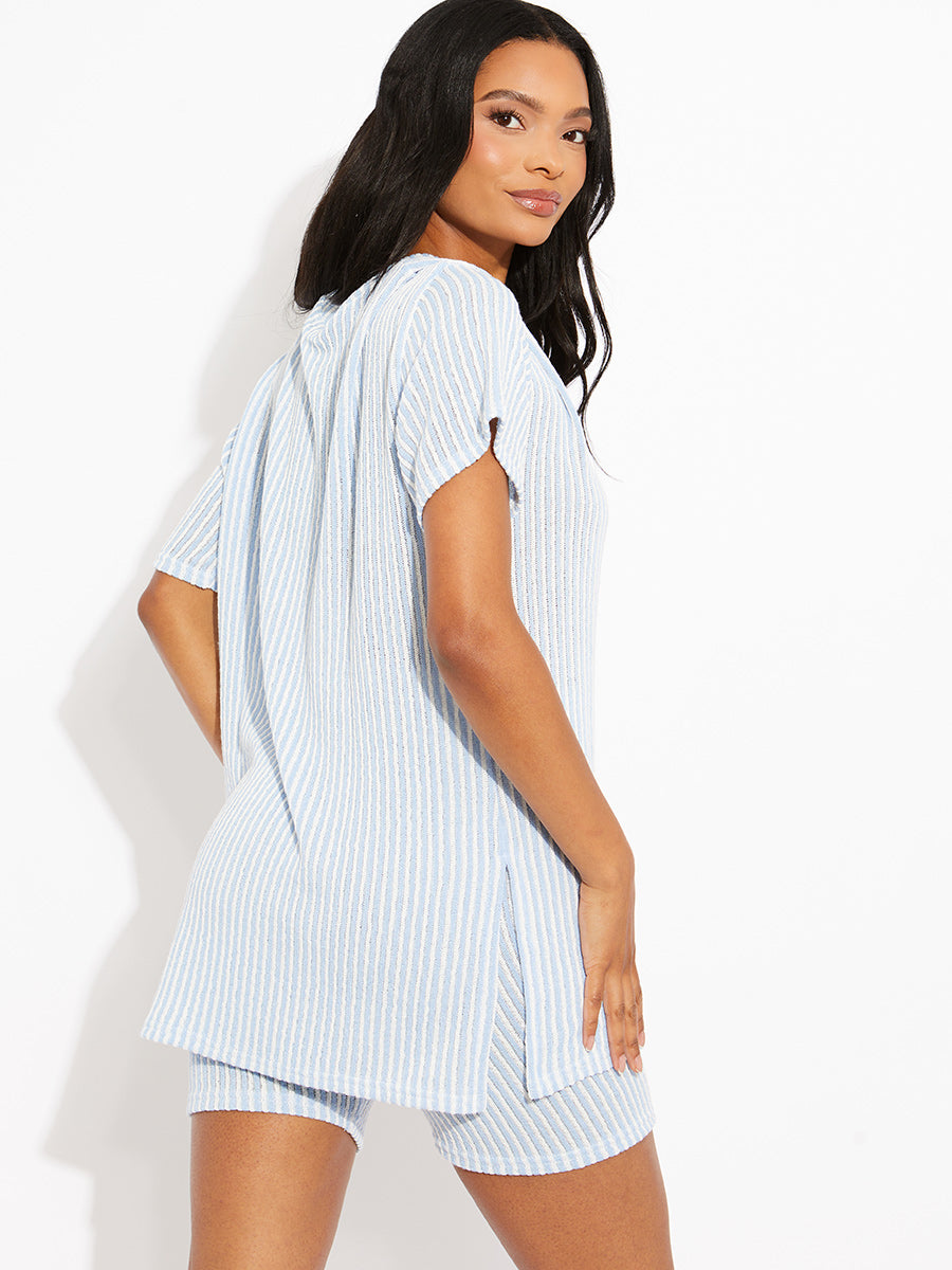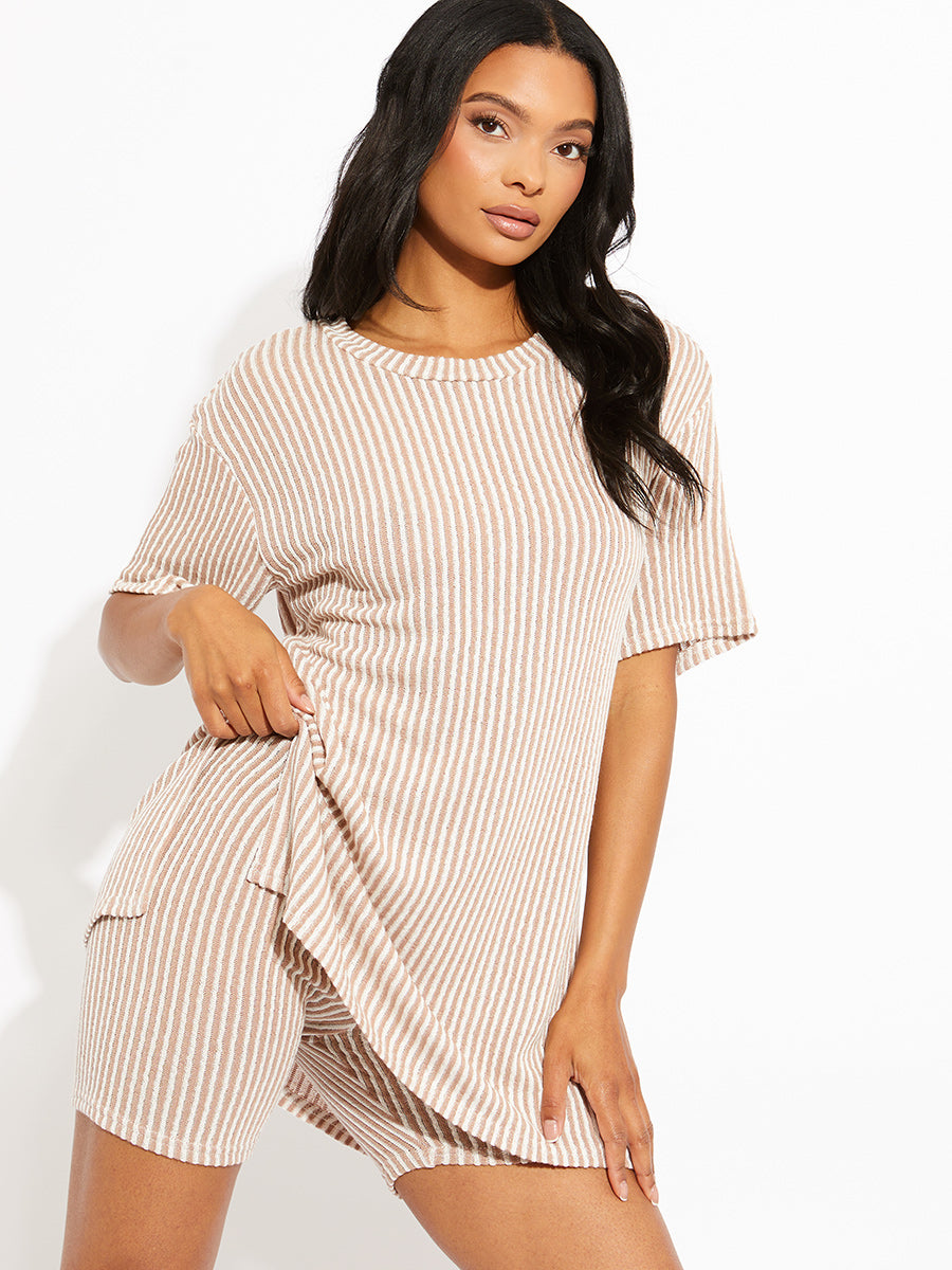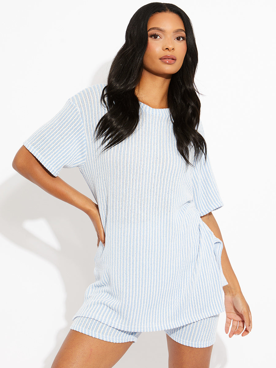 Woven Ribbed Oversized Top & Shorts Co-ord