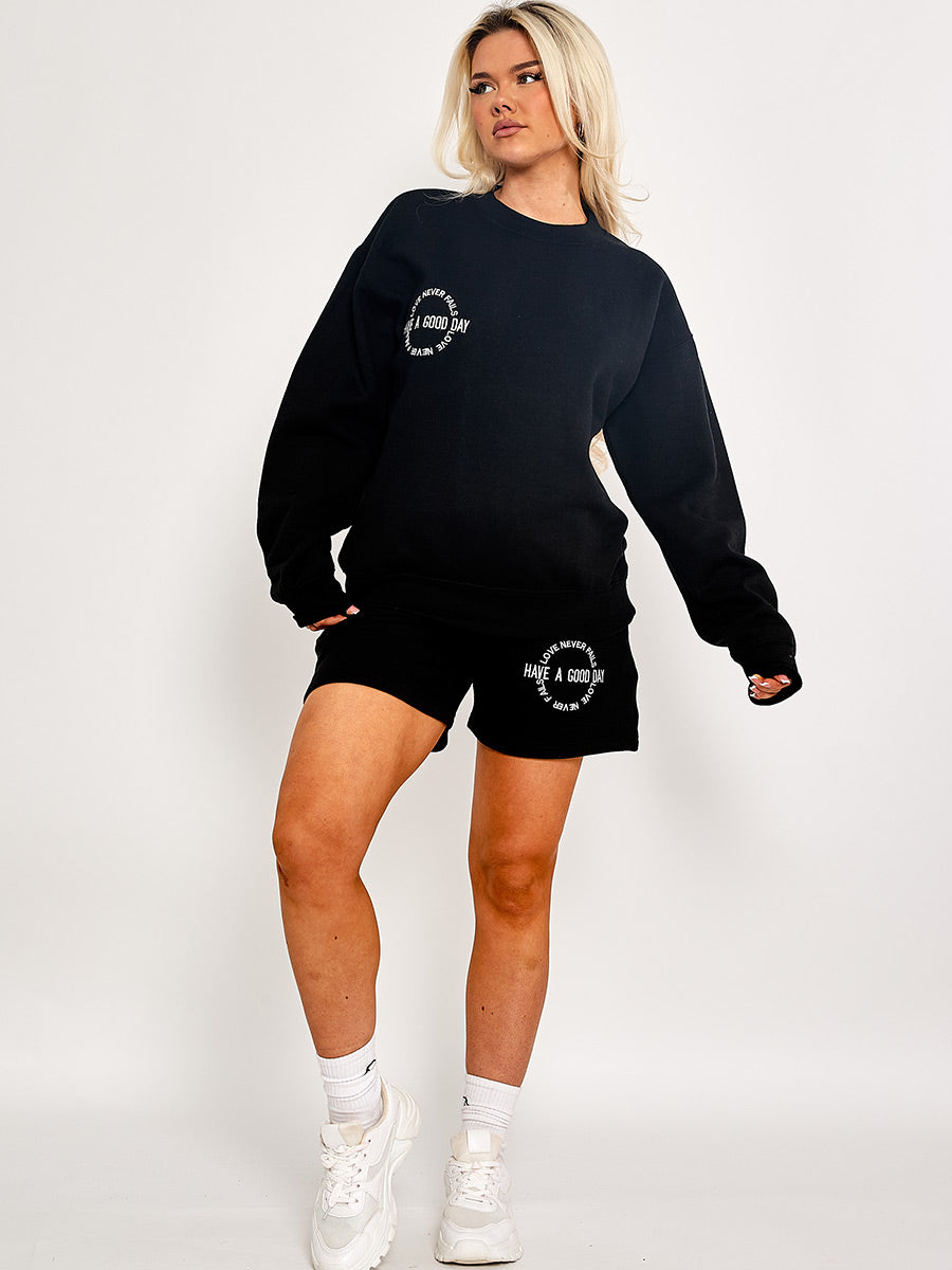 Embroidered Good Day Sweatshirt & Shorts Fleece Co-ord