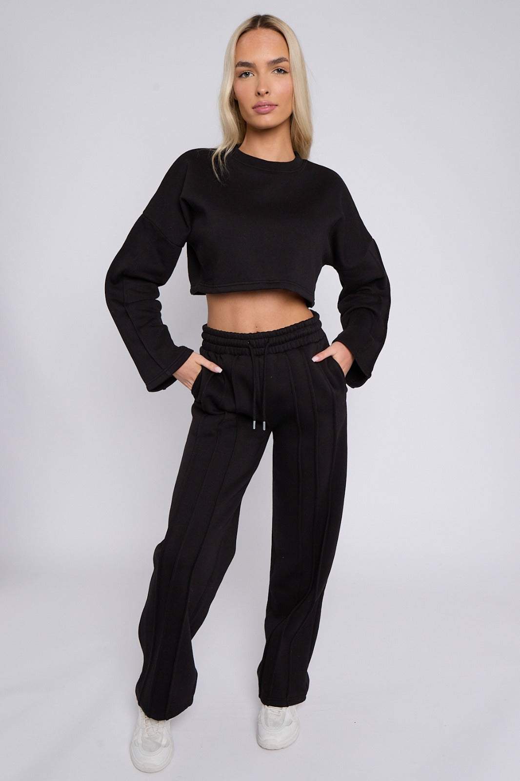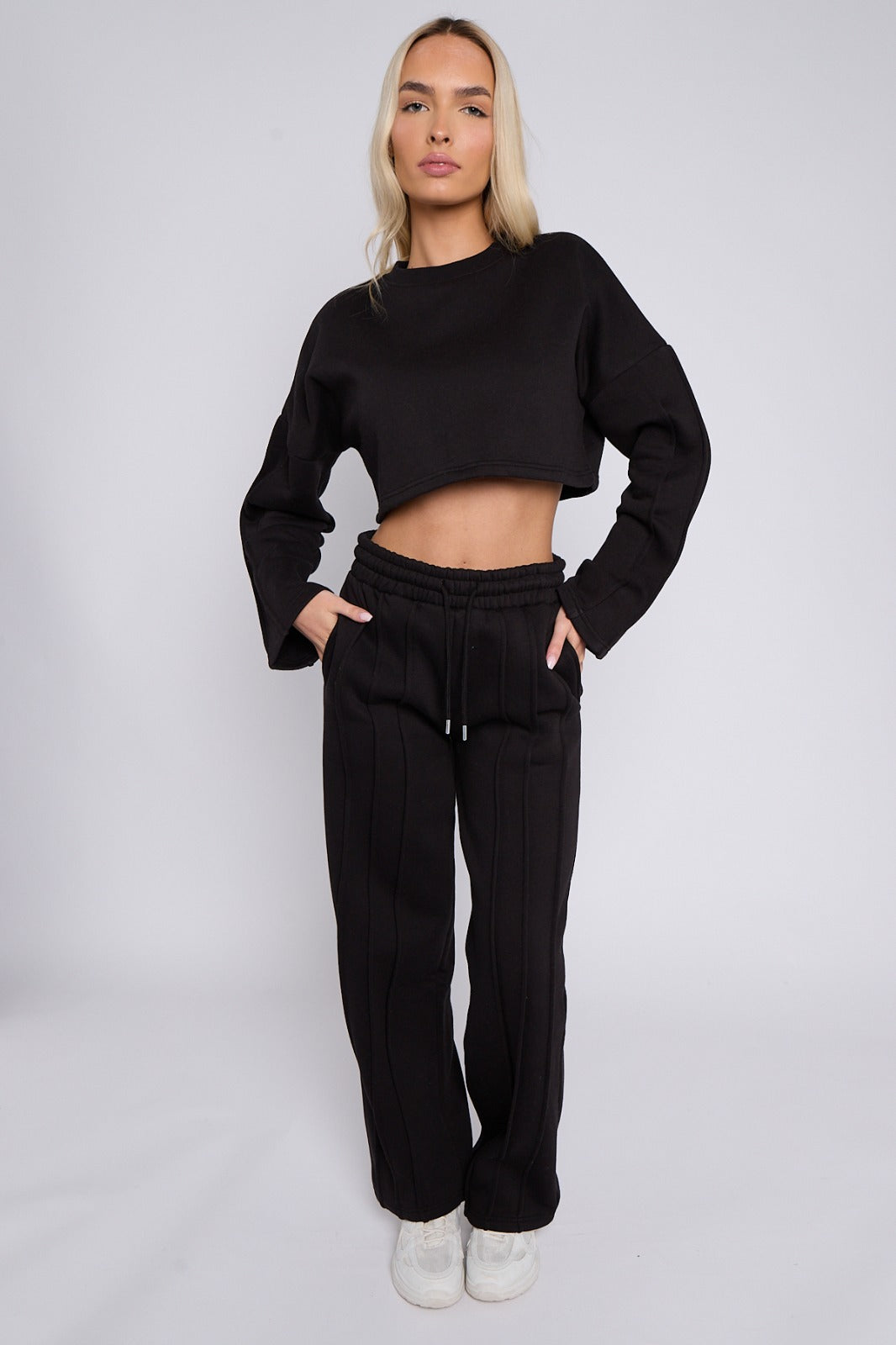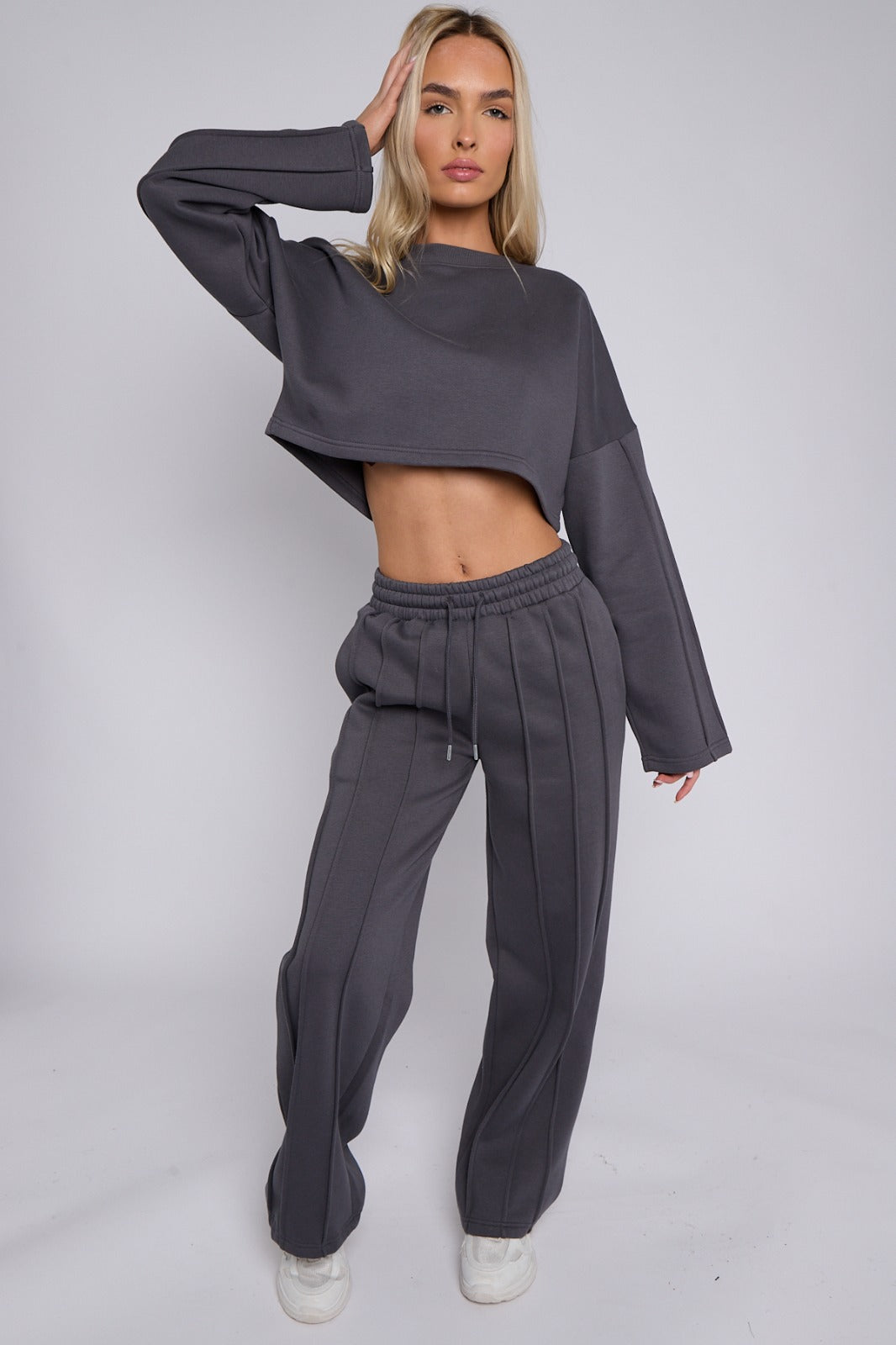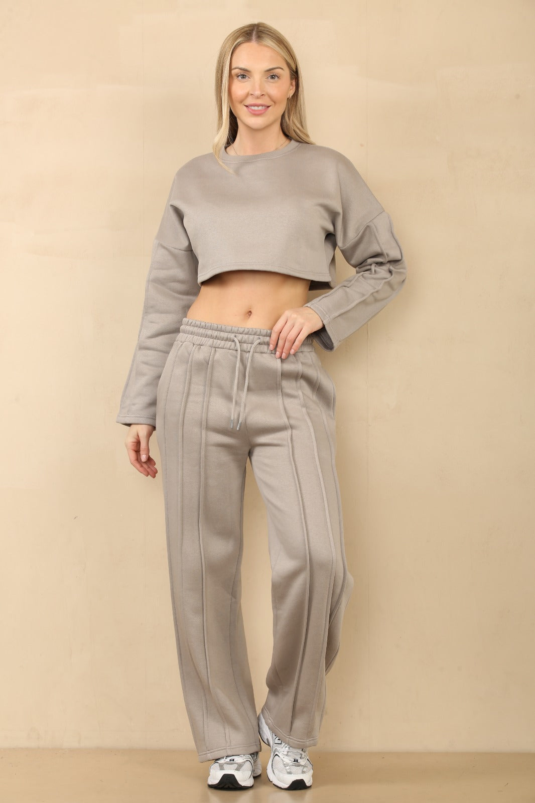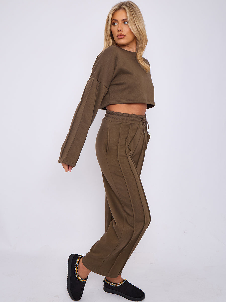 Seam Detail Oversized Crop Top & Joggers Fleece Co-ord
