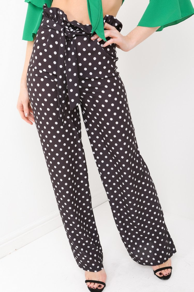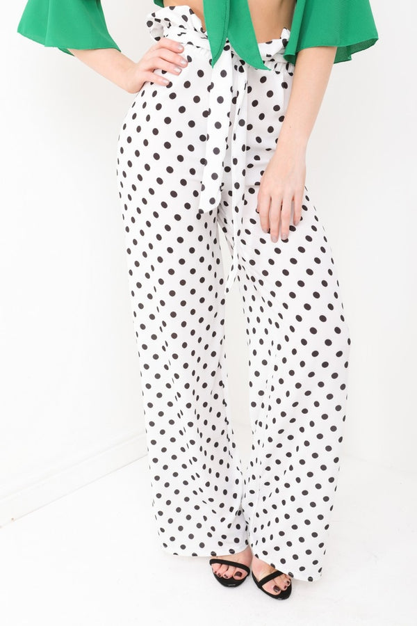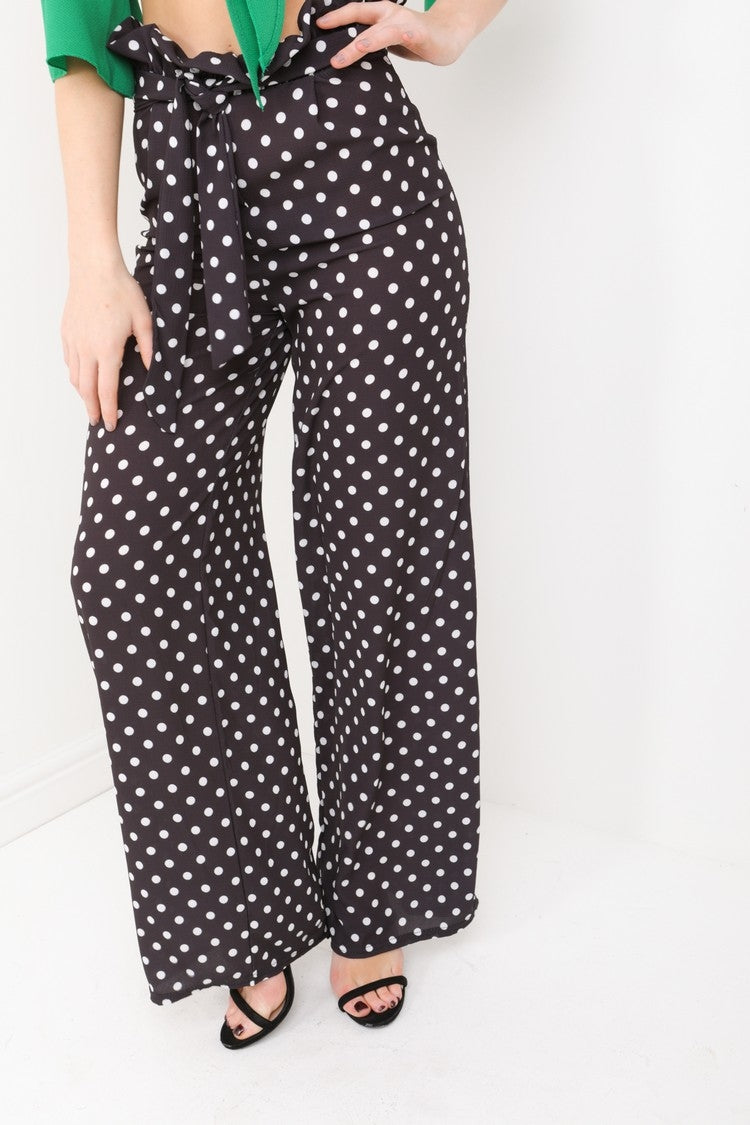 Chiffon Crepe Polka Dot Wide Leg Trousers