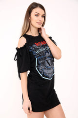 Cold Shoulder Rebel Printed Mini Dress