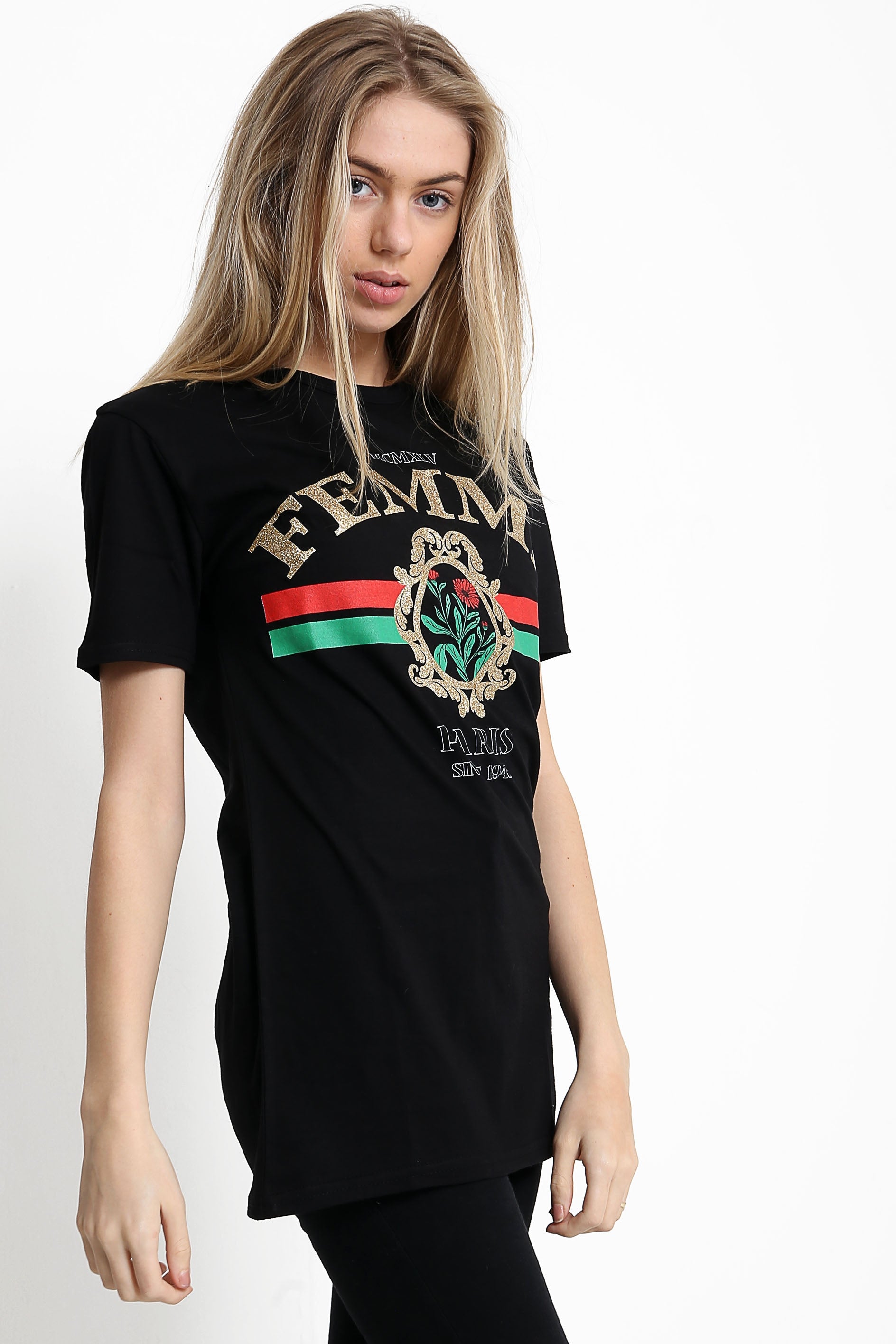 Femme Slogan Print With Glitter Detail