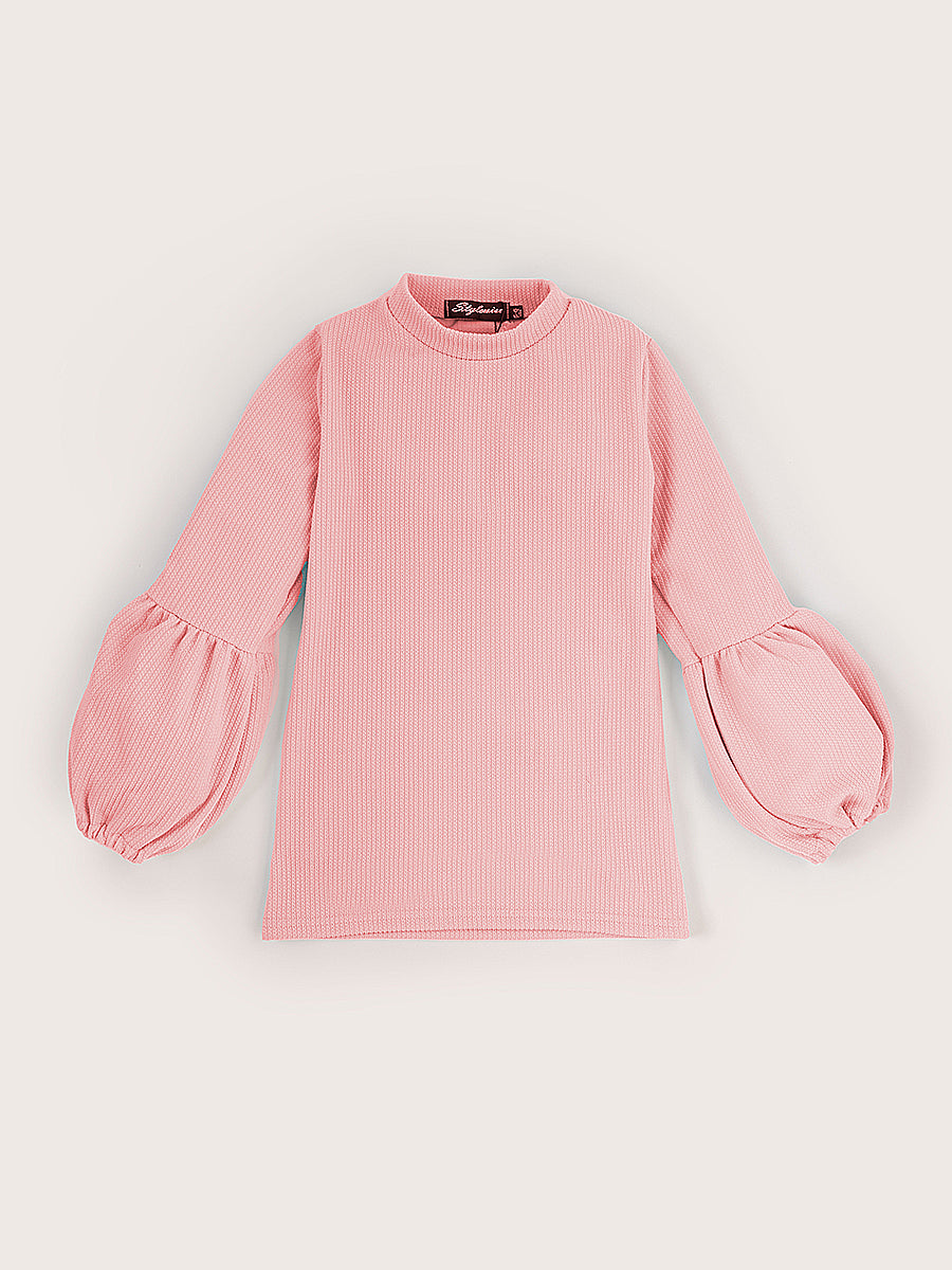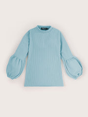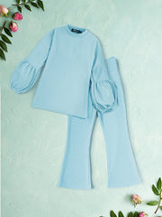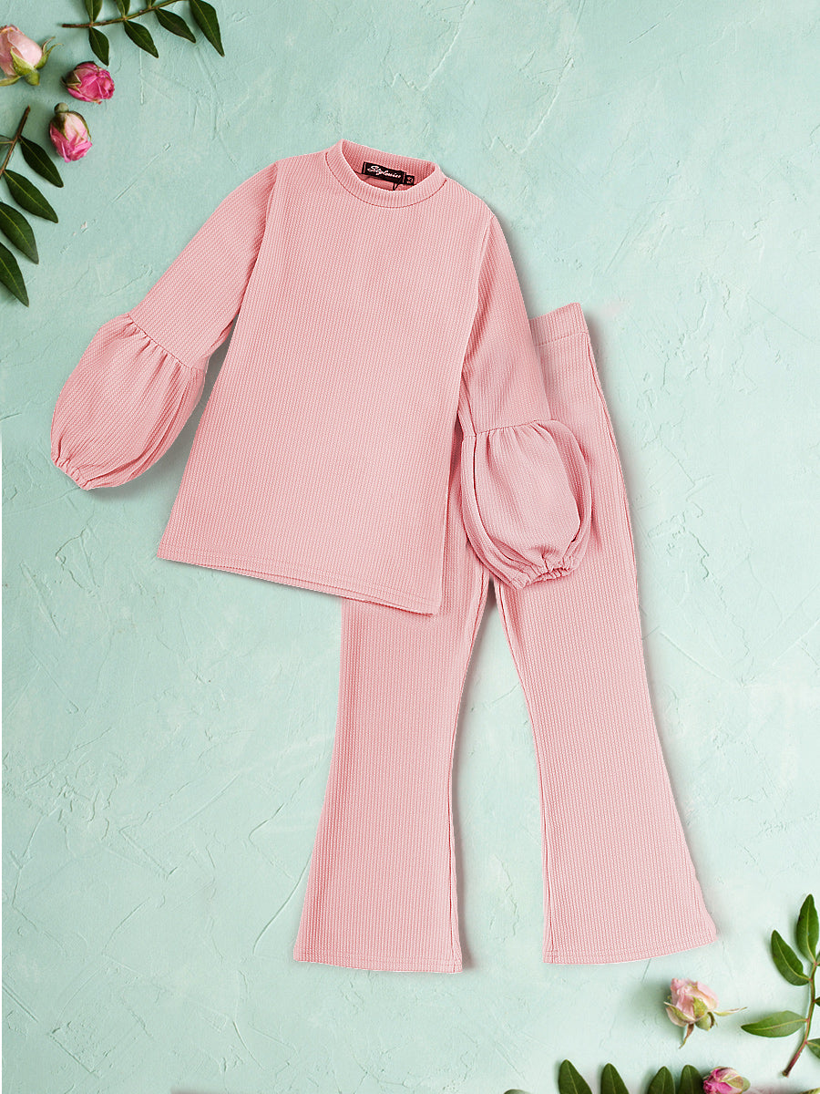 Kids Balloon Sleeve Ribbed Top & Flared Trouser Co-ord