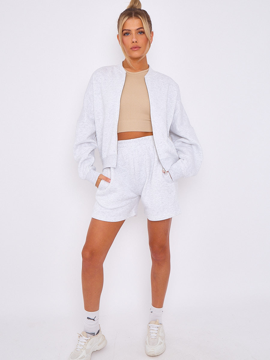 Oversized Bomber Style Fleece Zipper & Shorts Co-ord