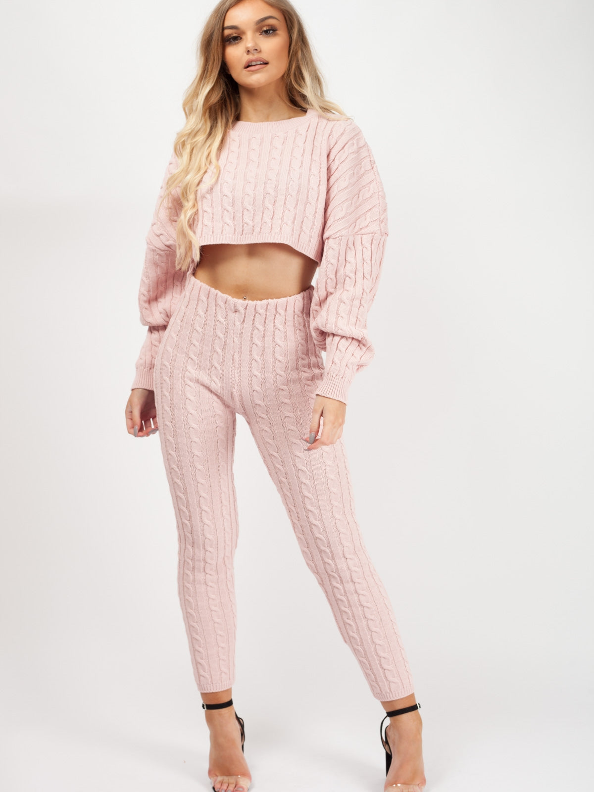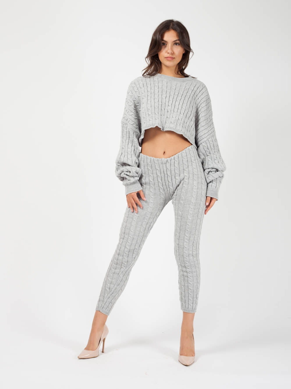 Oversized Cable Knit Crop Top & Trouser Co-ord