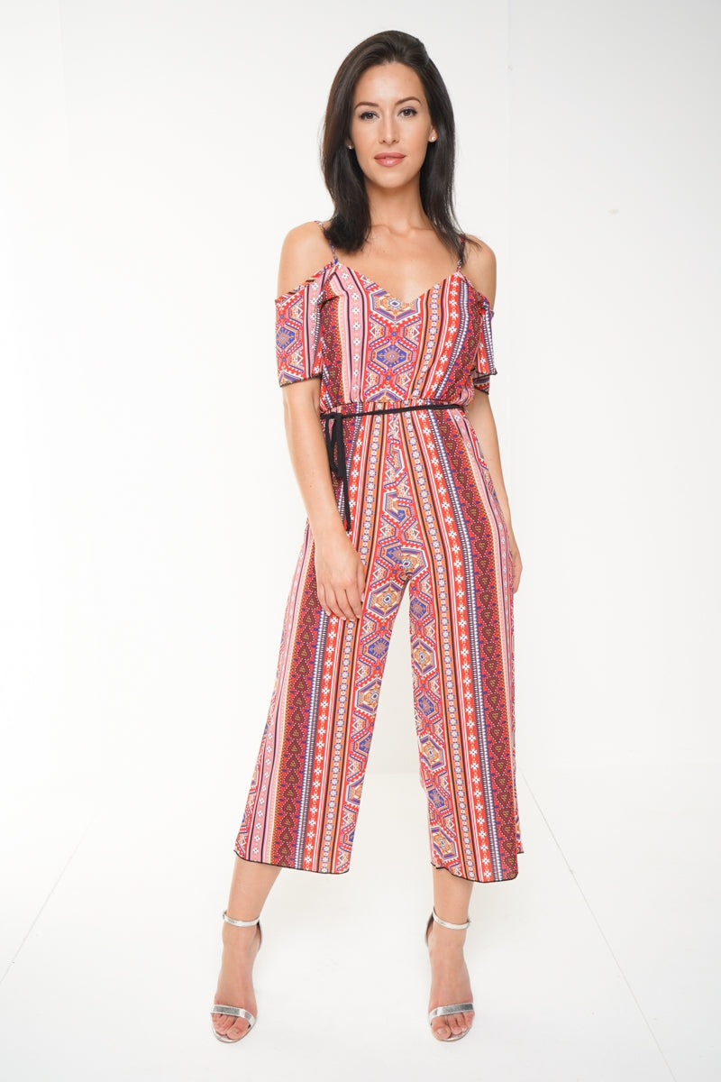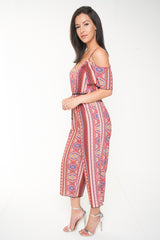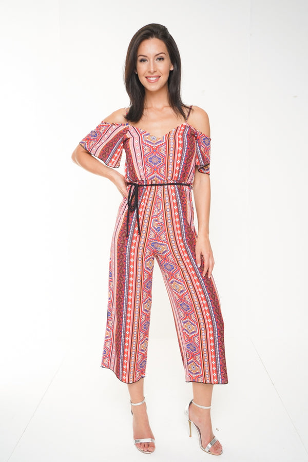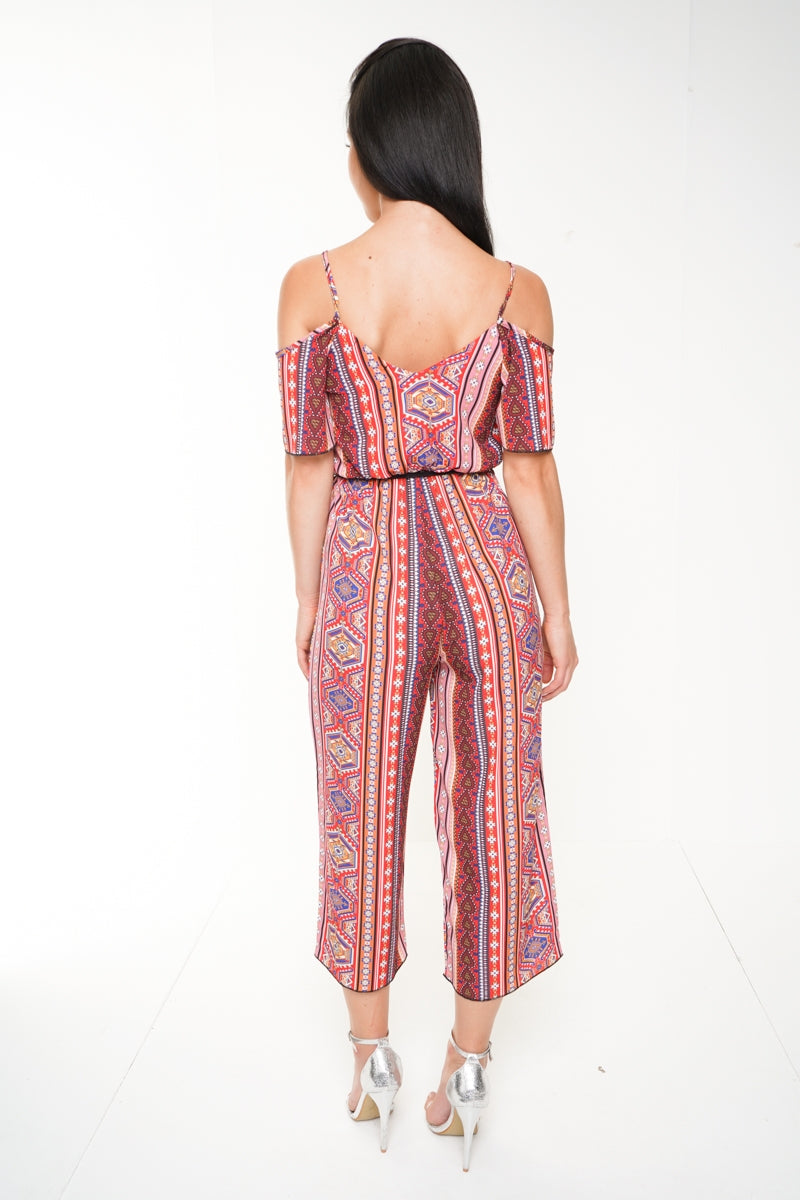 Paisley Print Cold Shoulder Culotte Jumpsuit