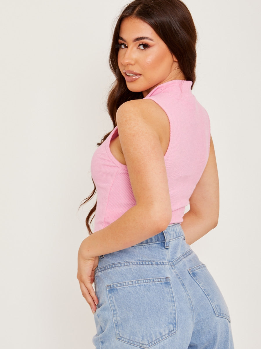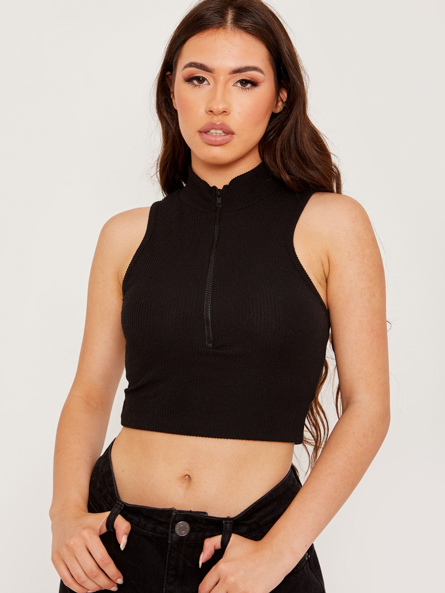 Sleeveless Zip Detail Ribbed Crop Top