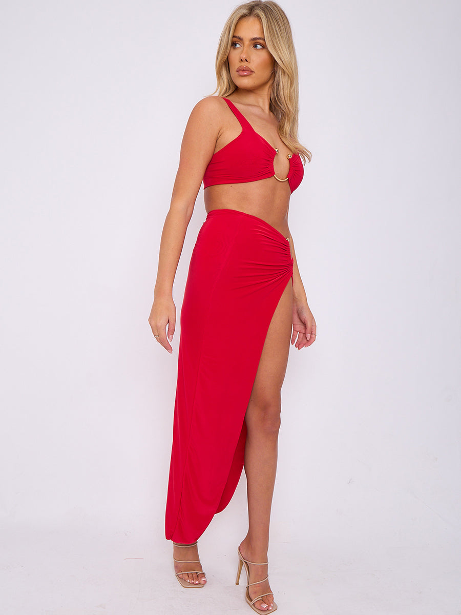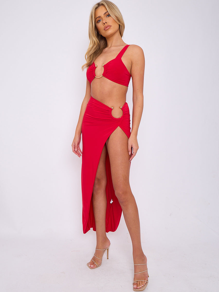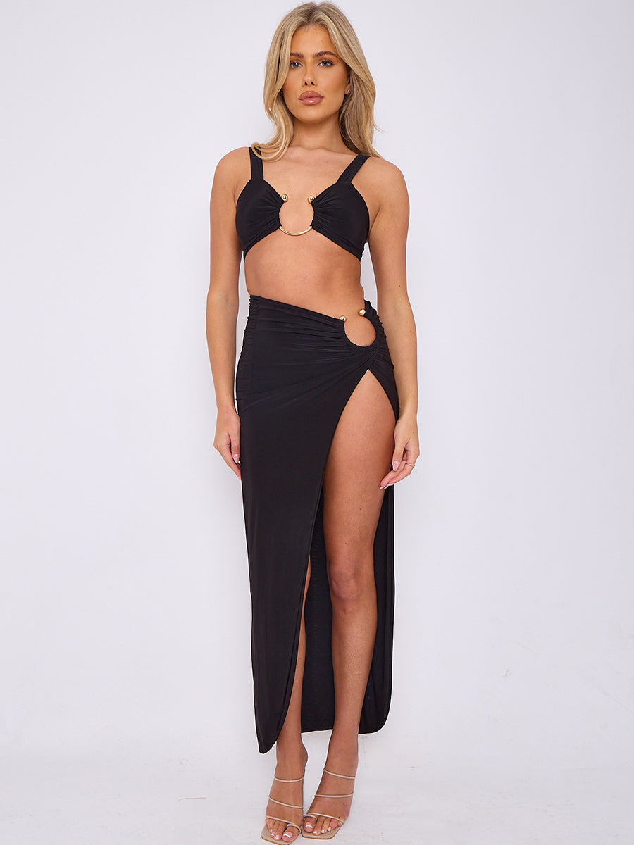 Slinky Buckle Detail Crop Top & Slit Skirt Co-ord