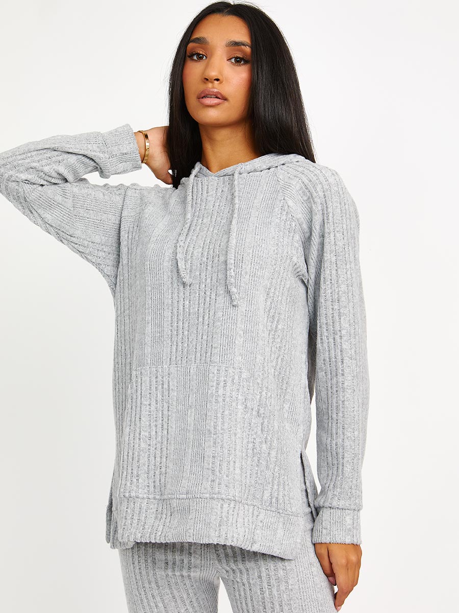 Soft Brushed Ribbed Hoodie & Flare Trouser Co-ord