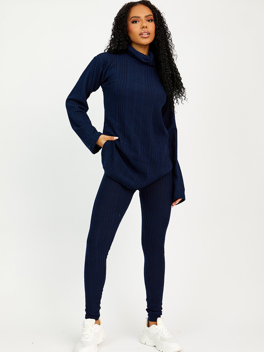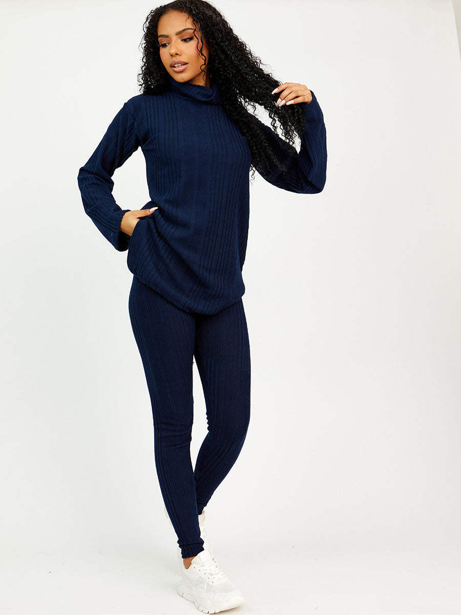 Soft Brushed Ribbed Roll Neck Top & Leggings Co-ord