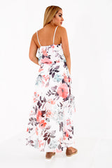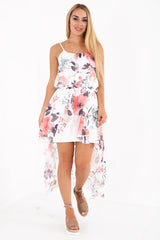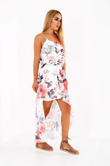 Spring Floral Asymmetric Dip Hem Chiffon Cami Dress