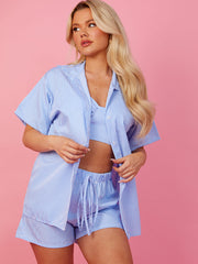 Striped Crop Top, Blouse & Shorts 3 Piece Co-ord