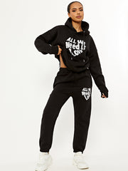 Towelling Embroidered All We Need Is Love Hooded Fleece Co-ord