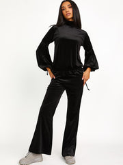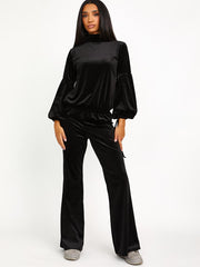 Velour Balloon Sleeve Top & Flare Trouser Co-ord
