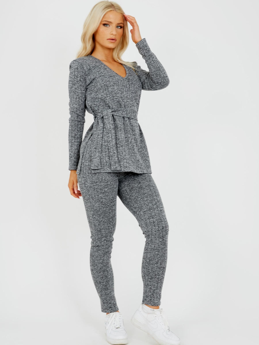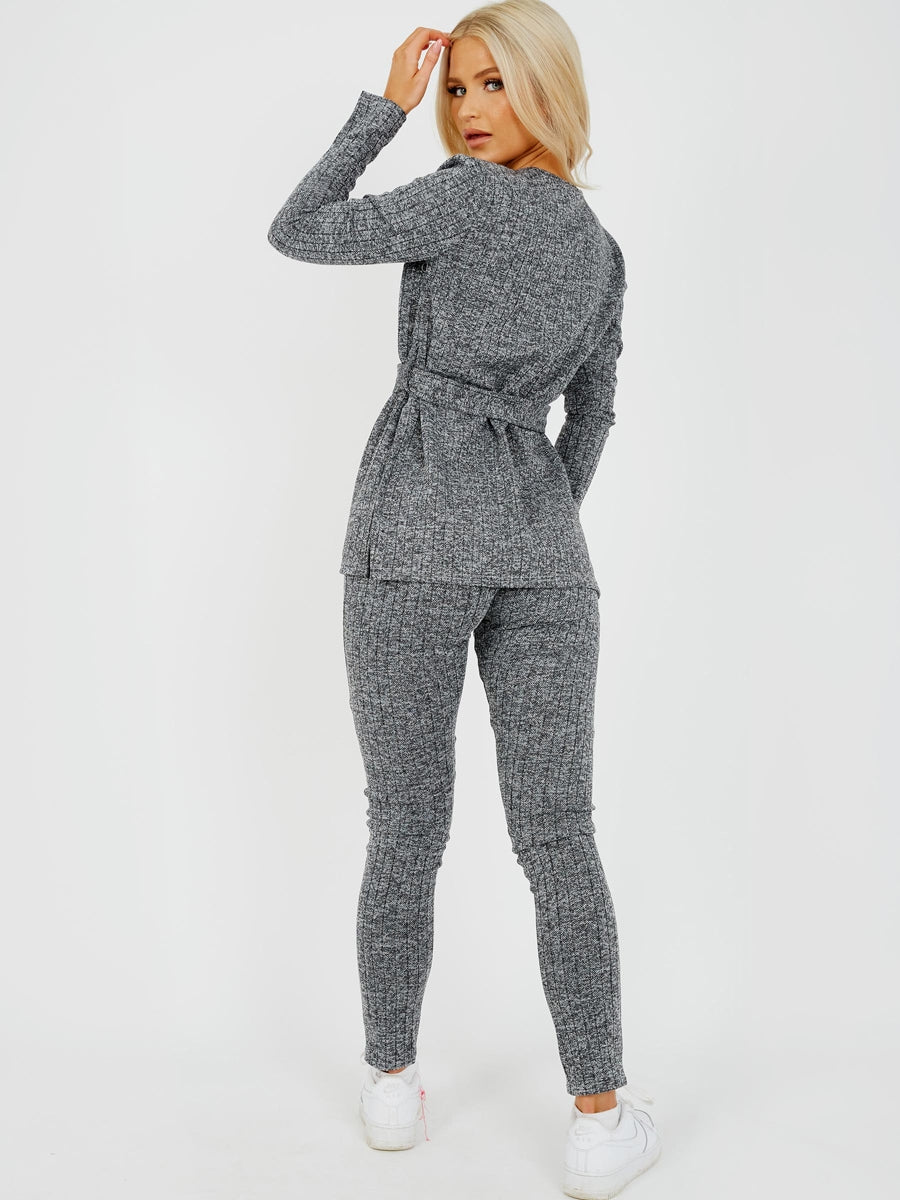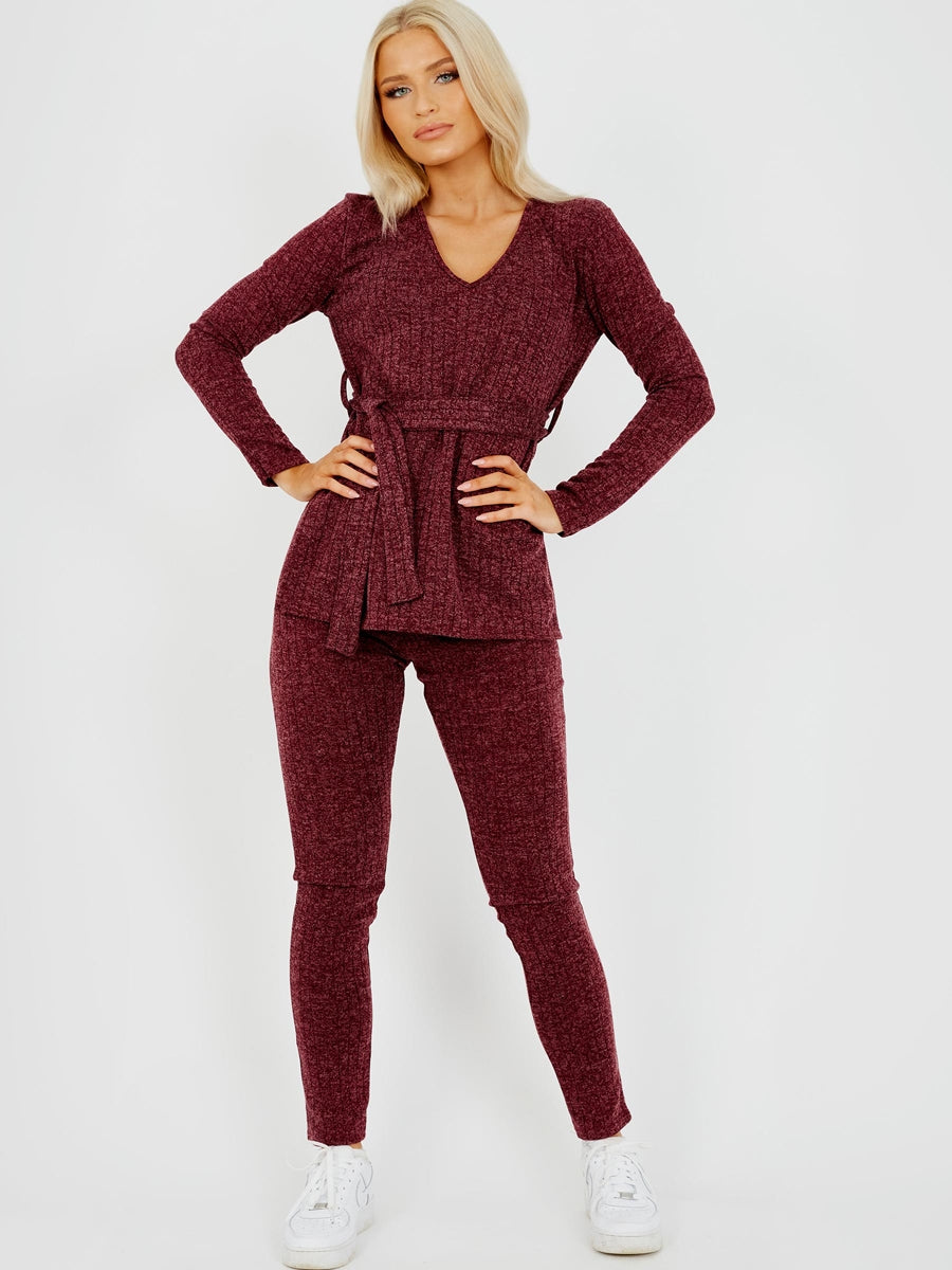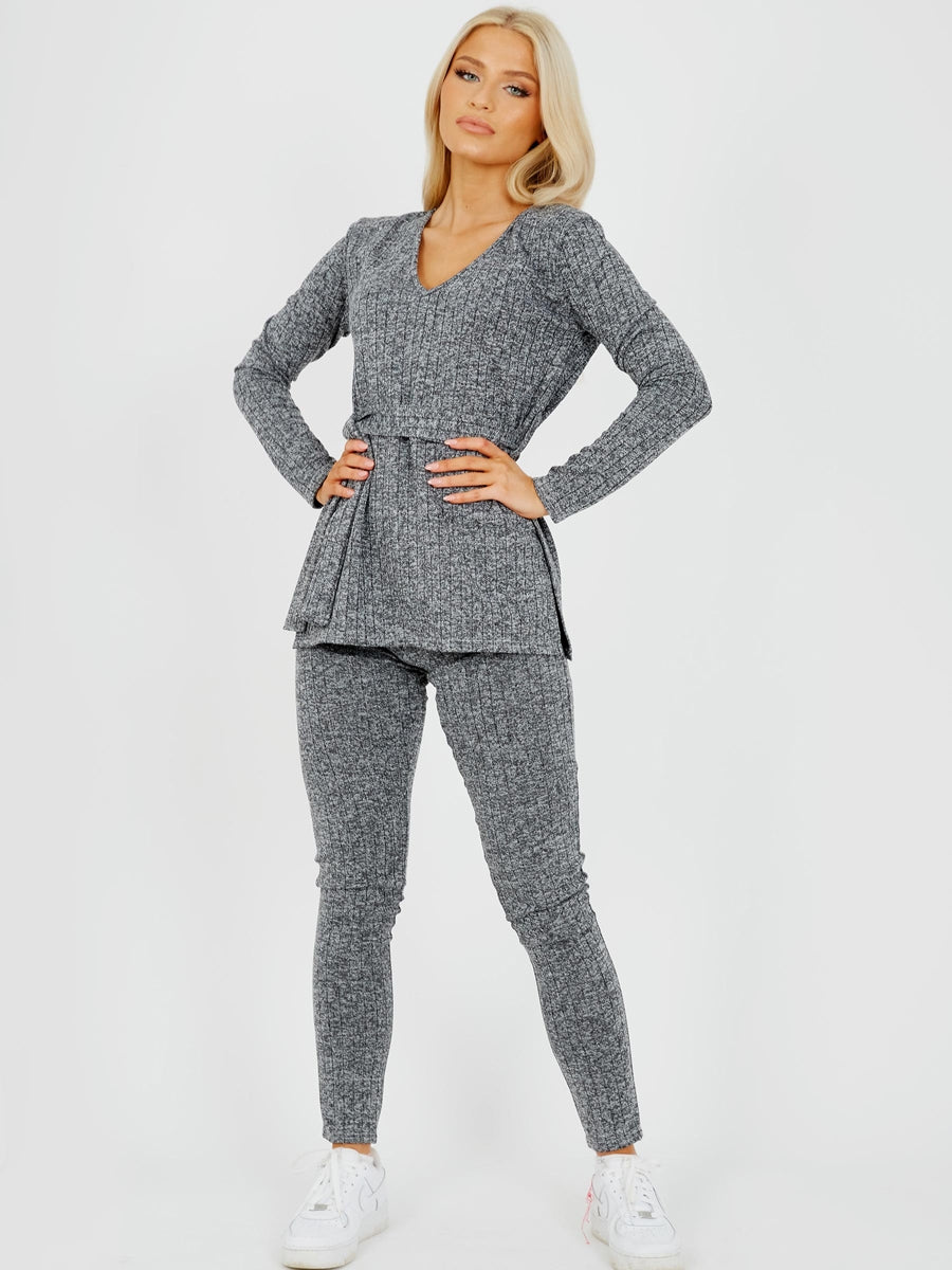 Melange Knit Ribbed Belted Top & Trouser Co-ord