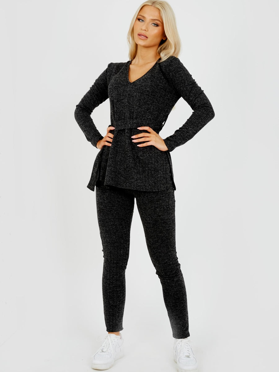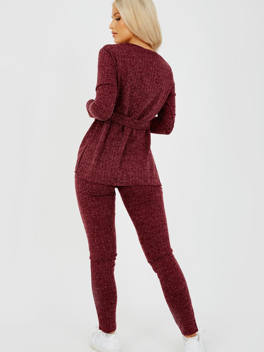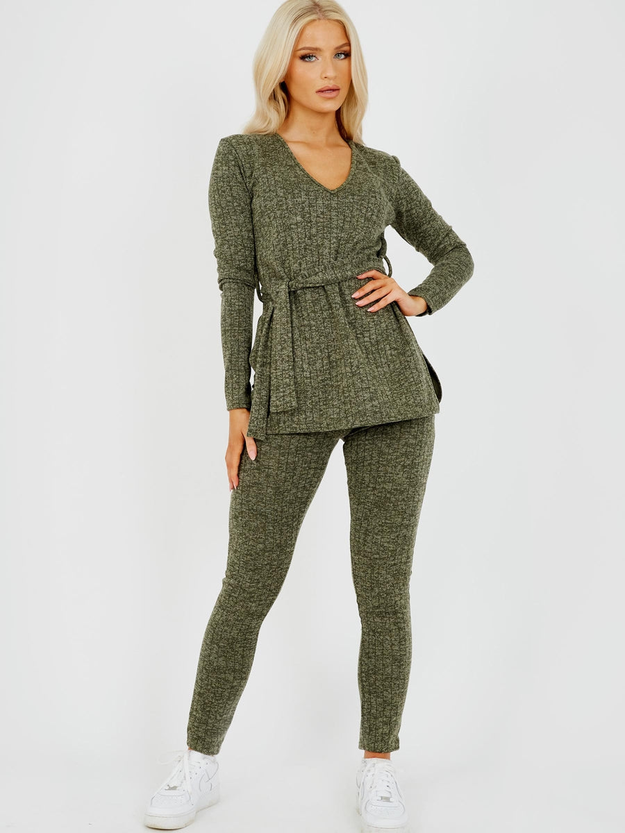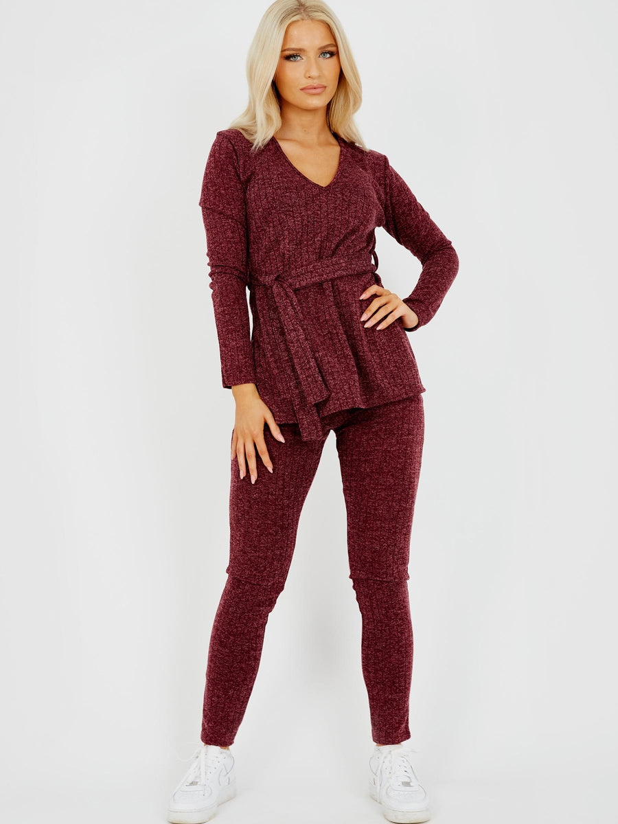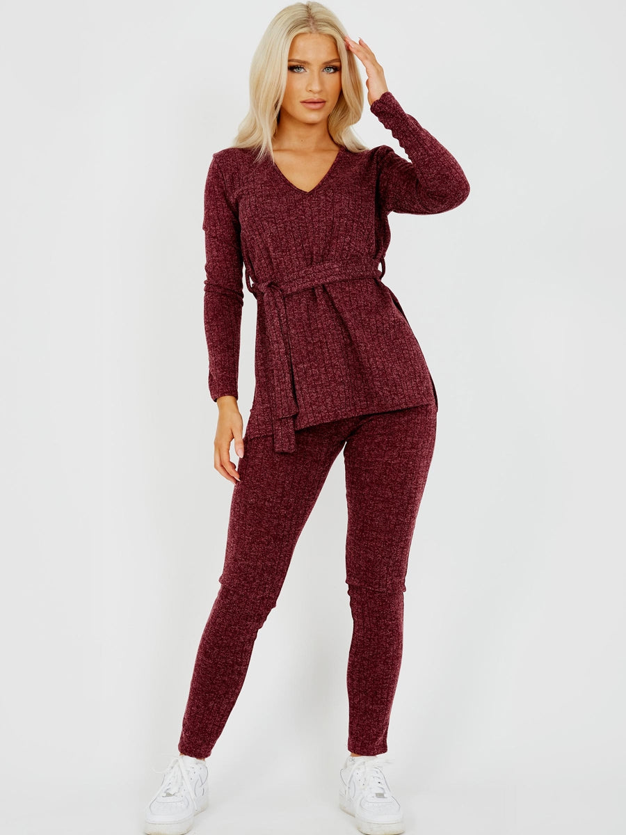 Melange Knit Ribbed Belted Top & Trouser Co-ord