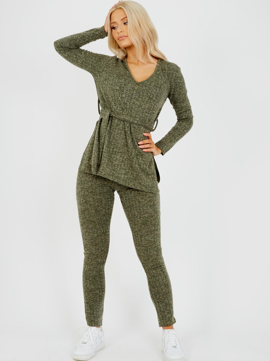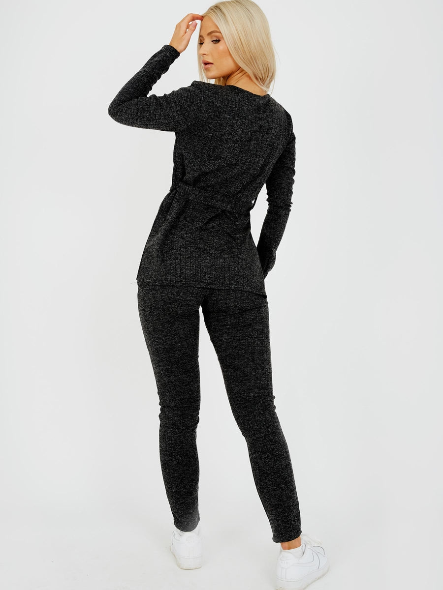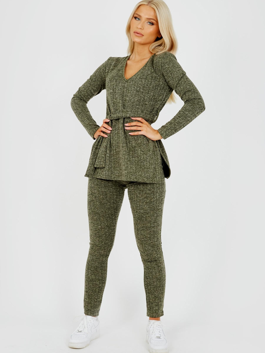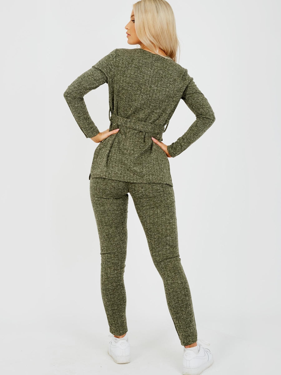 Melange Knit Ribbed Belted Top & Trouser Co-ord
