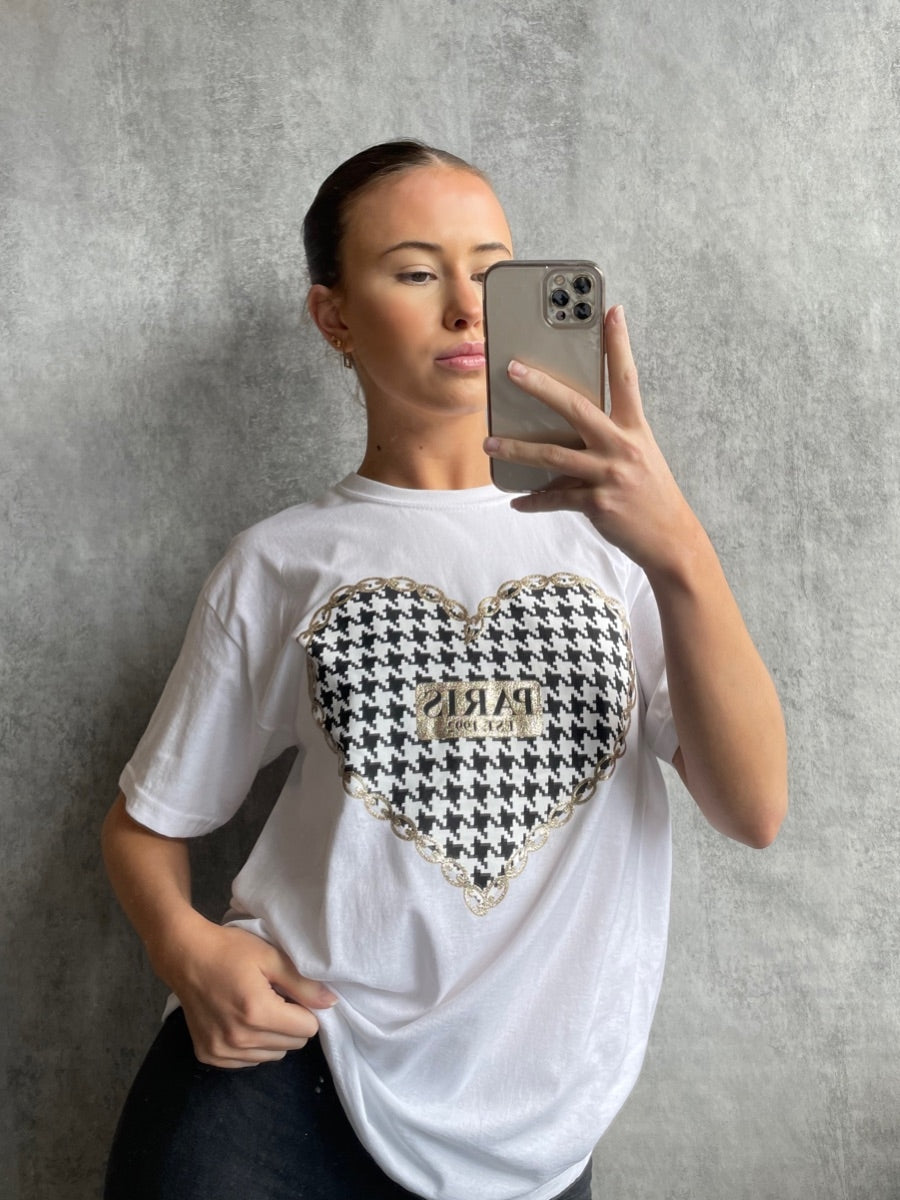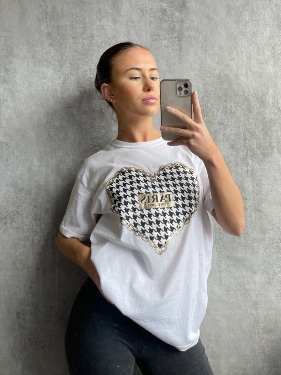 PARIS Dogtooth Heart Graphic Printed T-Shirt
