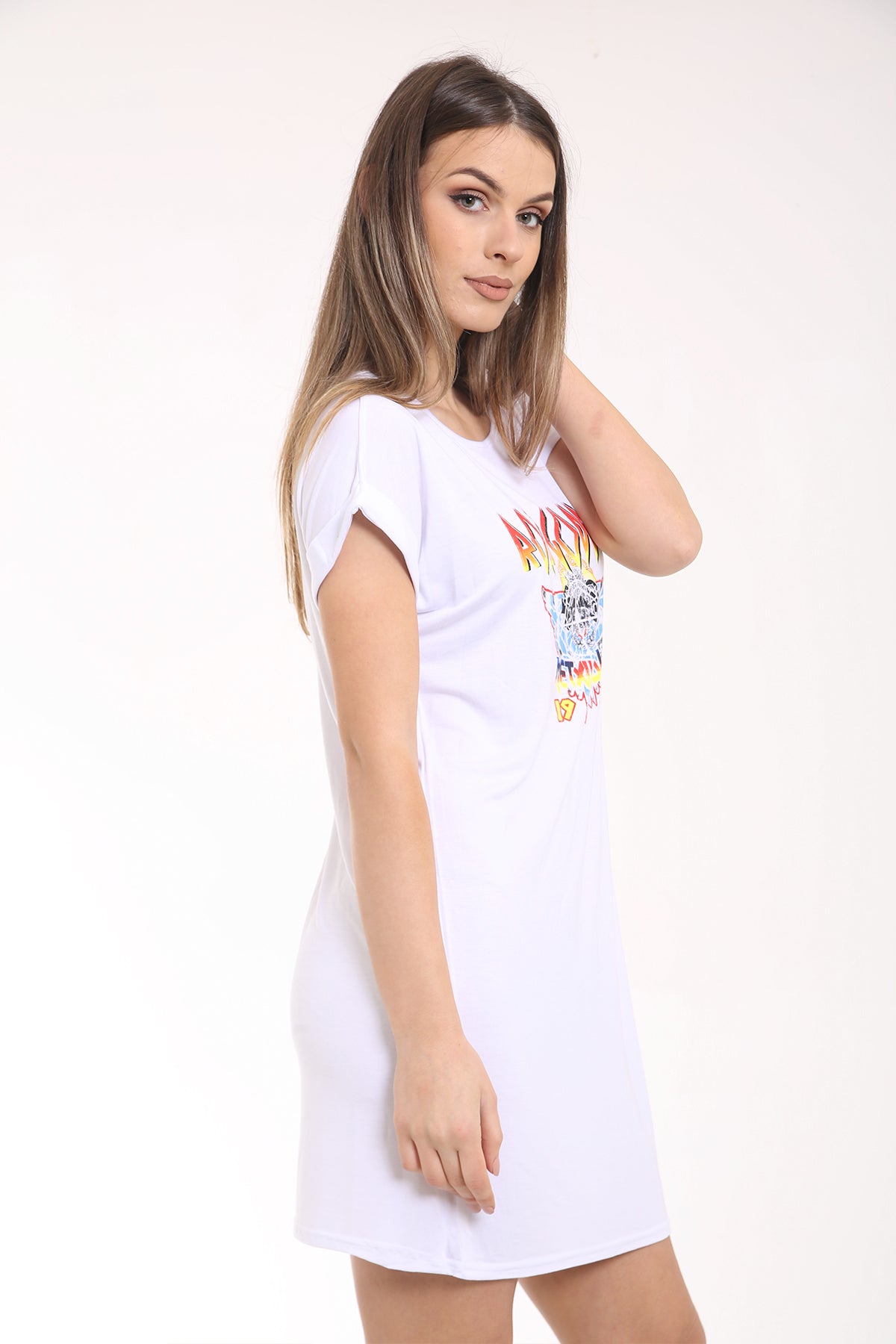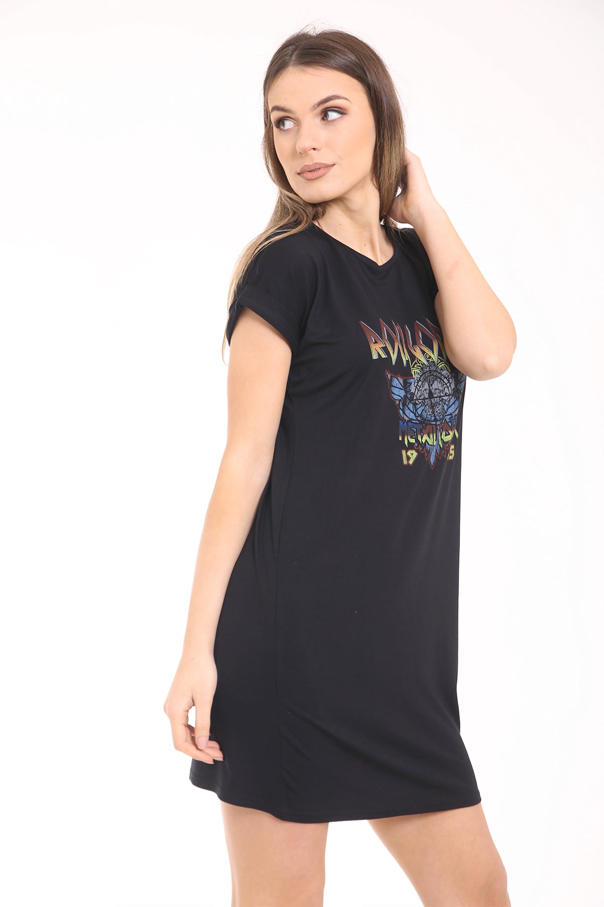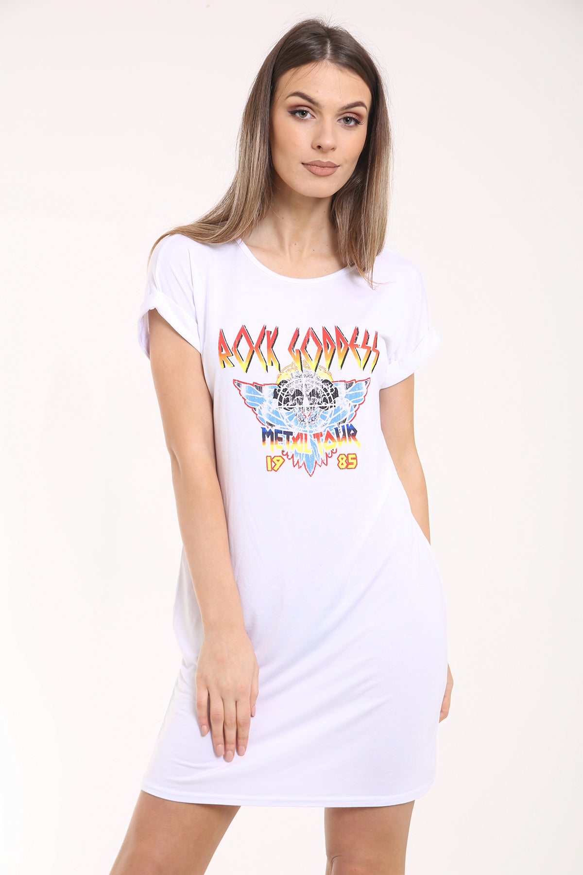 Rock Goddess Print Longline T Shirt Dress
