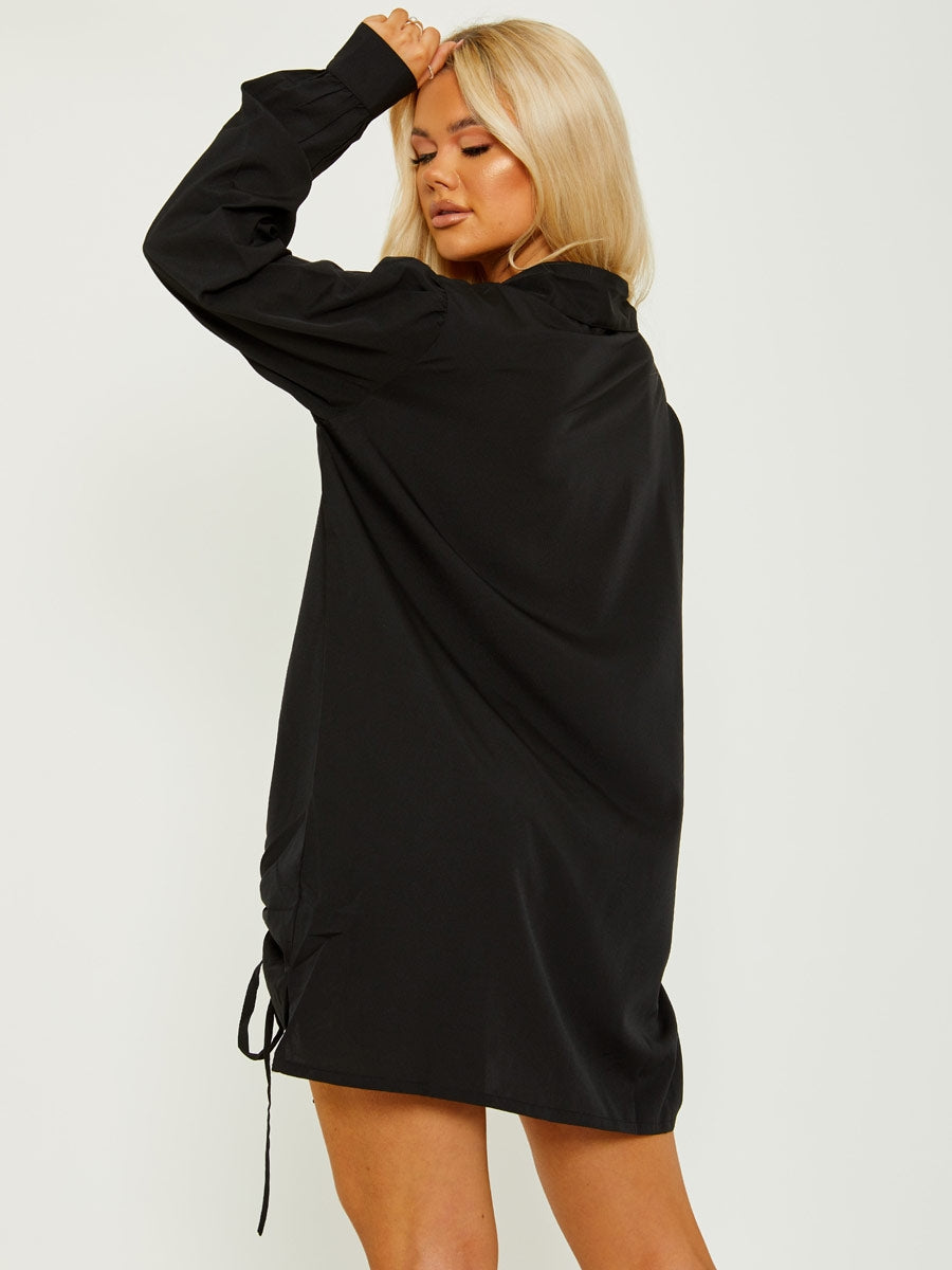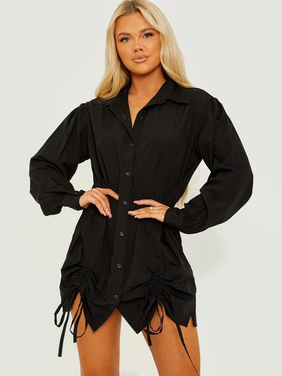 Tunnel Tie Ruched Buttoned Shirt Dress