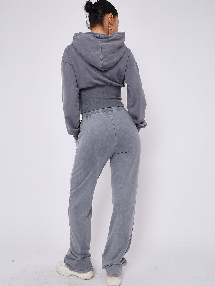Acid Wash High Waist Hoodie & Jogger Tracksuit