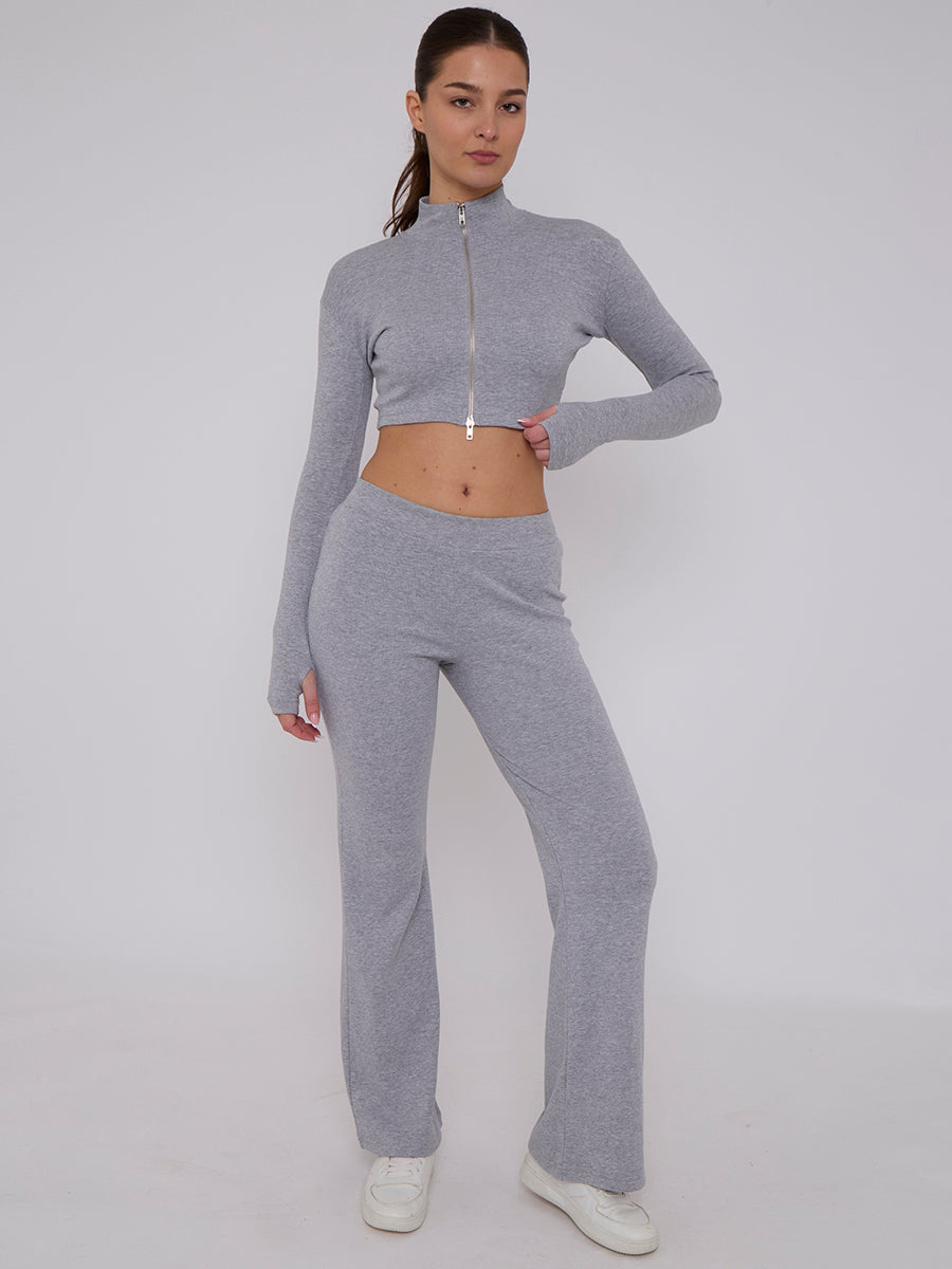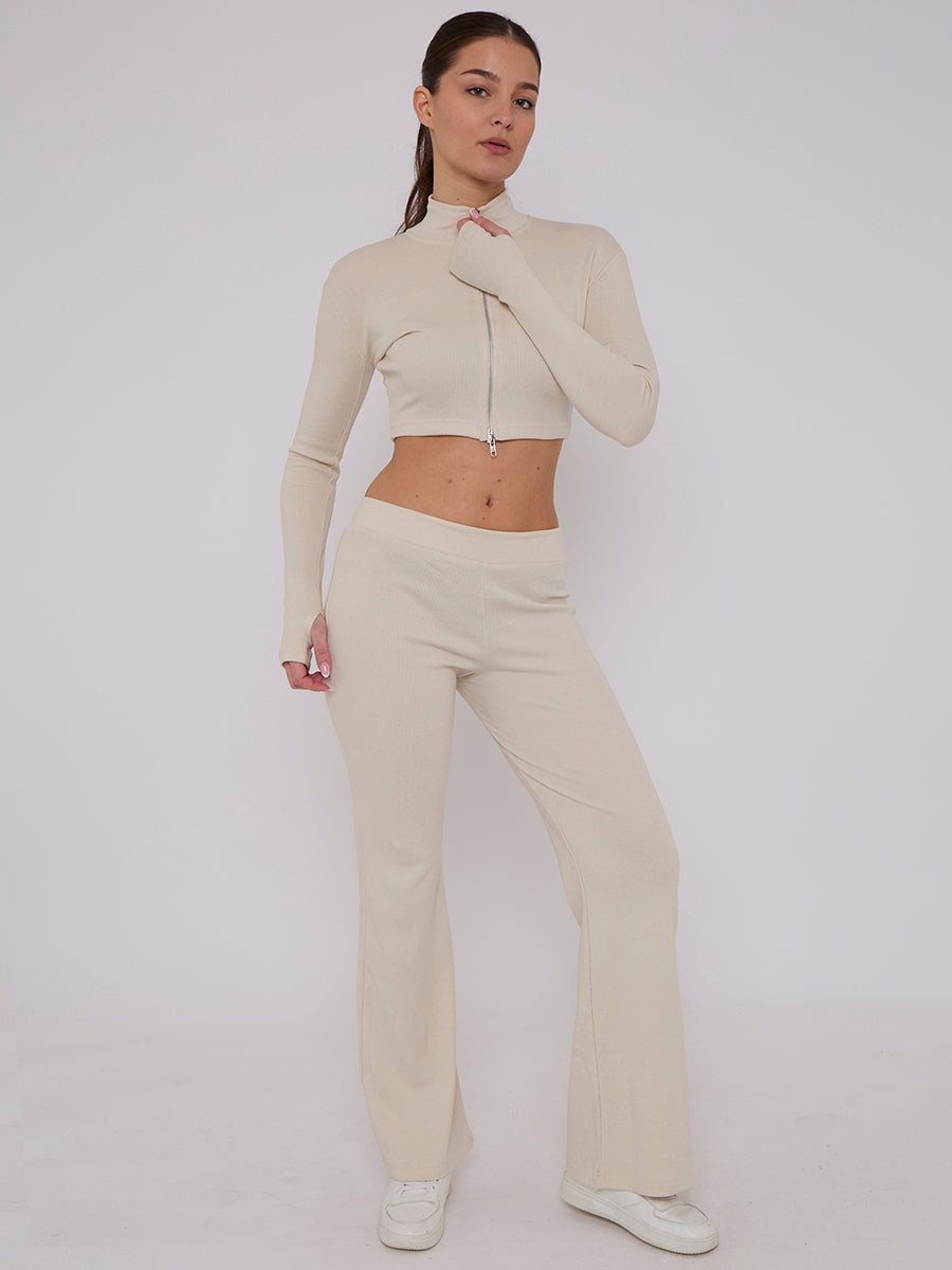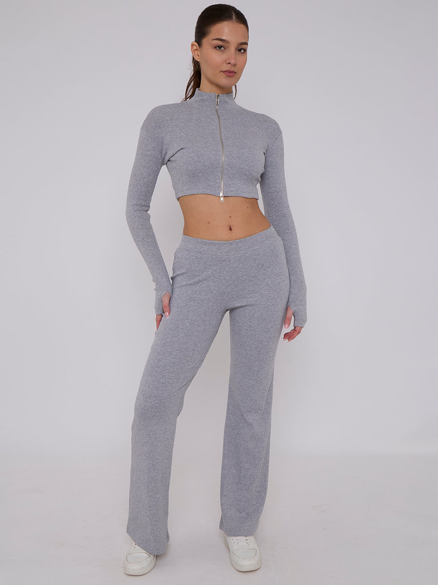 Cropped Zipper Tracktop & Wide Leg Trouser Set