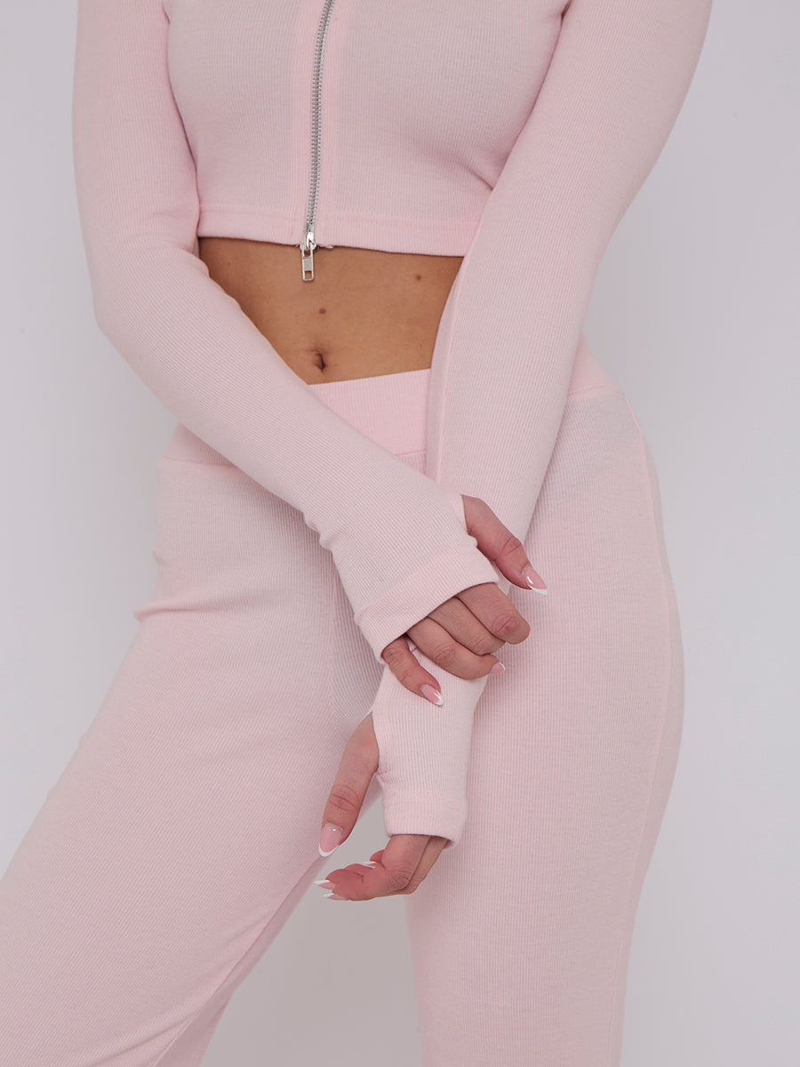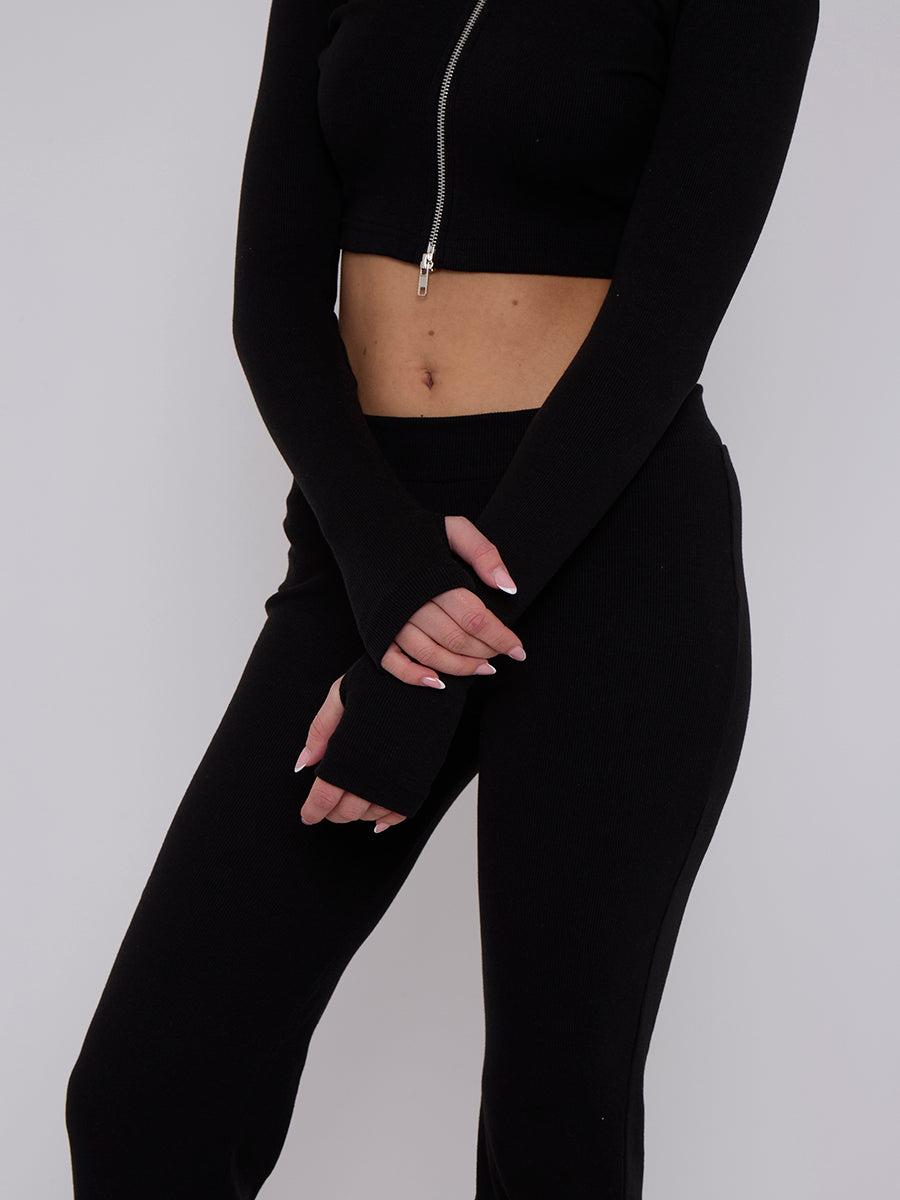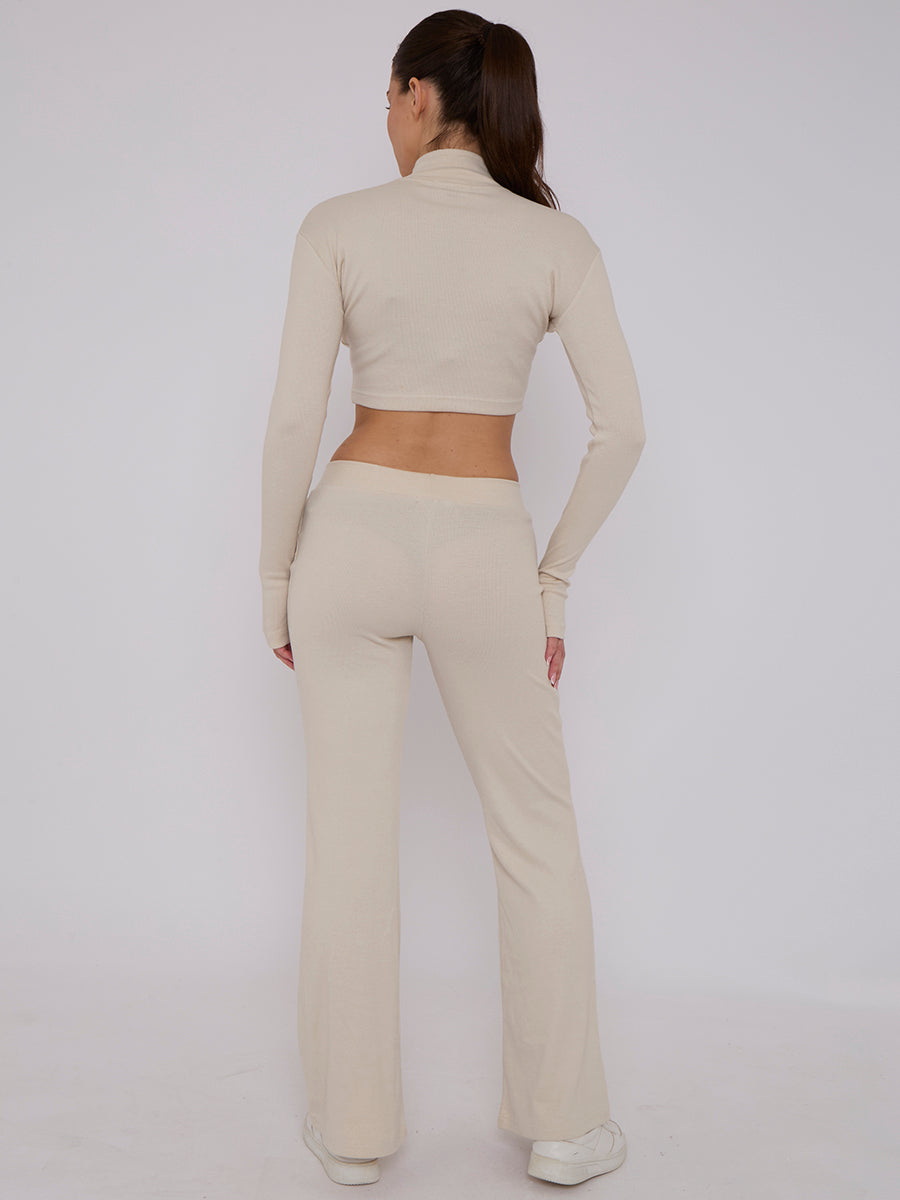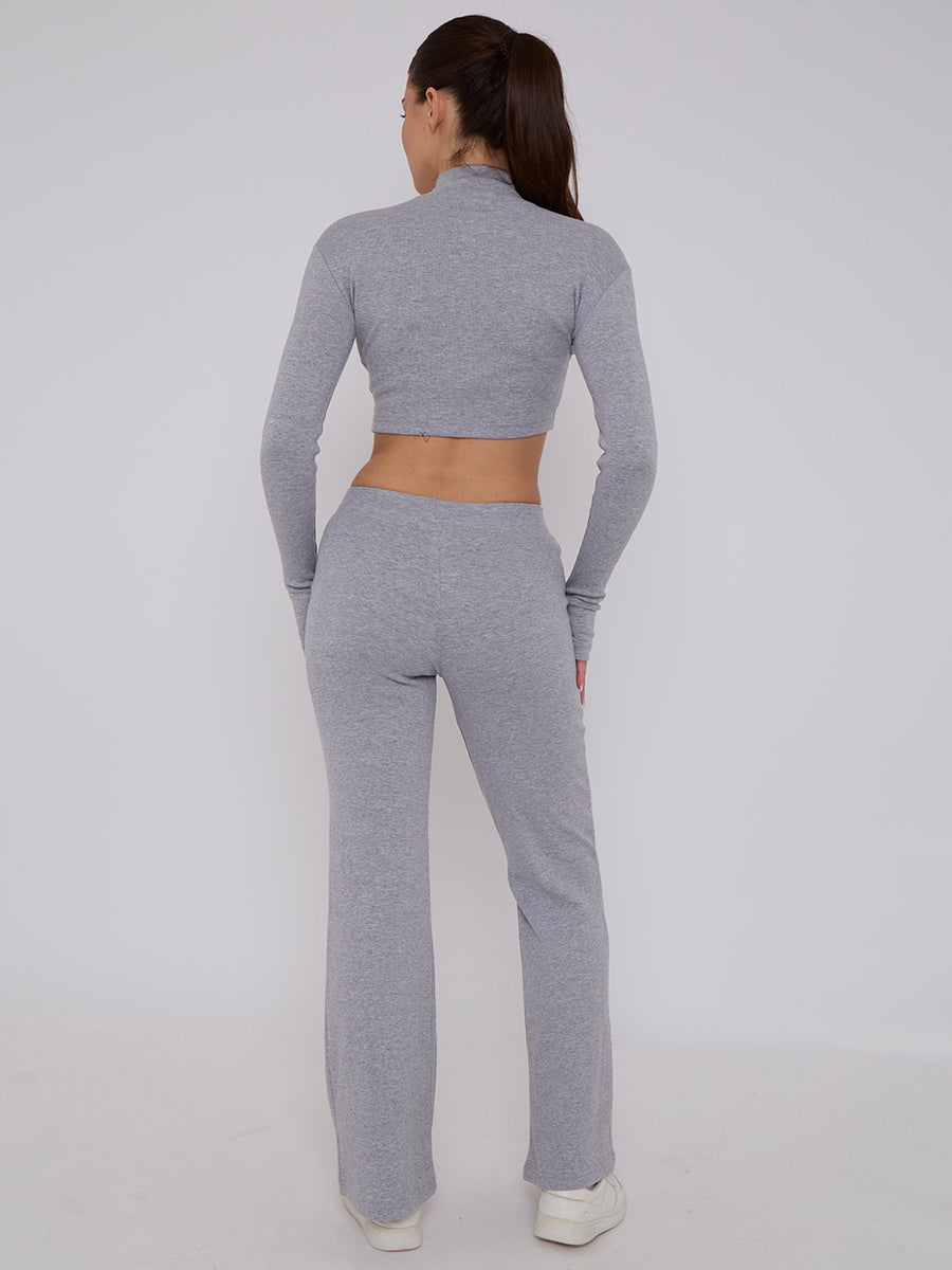 Cropped Zipper Tracktop & Wide Leg Trouser Set