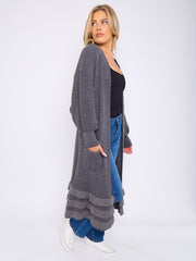 Frill Hem Balloon Sleeves Knitted Open Cardigan