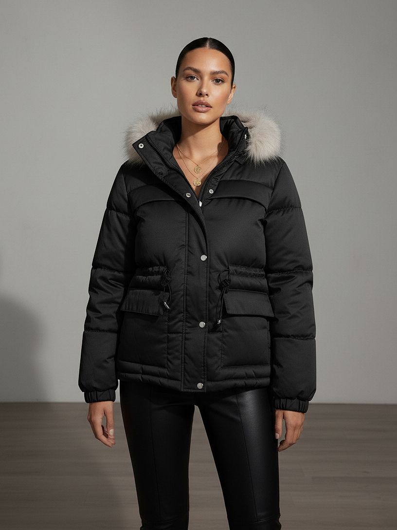 Padded Puffer Jacket With Faux Fur Hood Trim