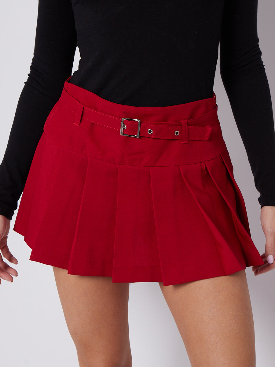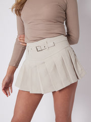 Pleated Mini Plain Tennis Skort With Belt