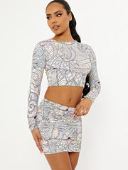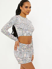Printed Slinky Crop Top & Ruched Skirt Co-ord