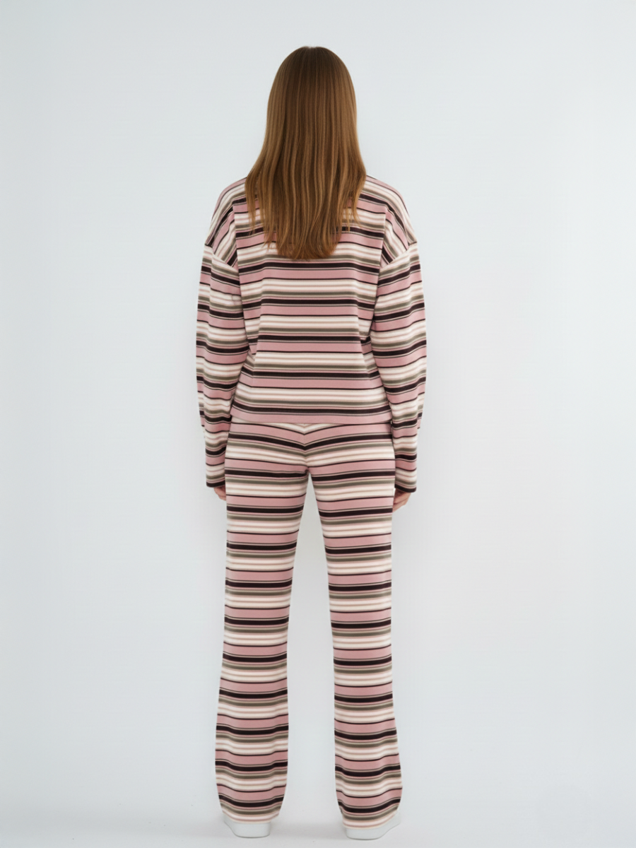 Rugby Collar Stripe Sweatshirt & Trouser Set